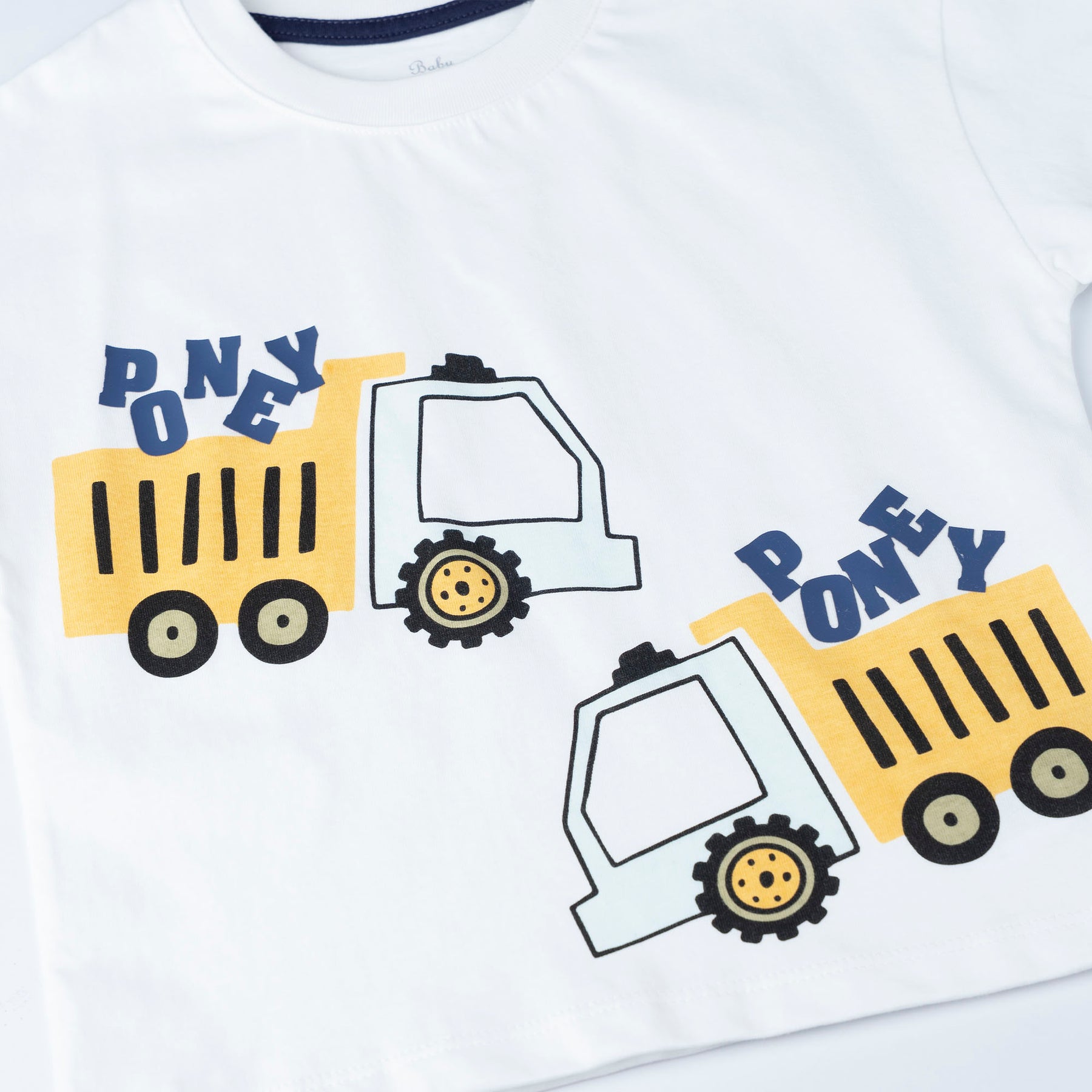 a fun tipper truck prints, paired with mini twill bermuda shorts designed with a stretchy