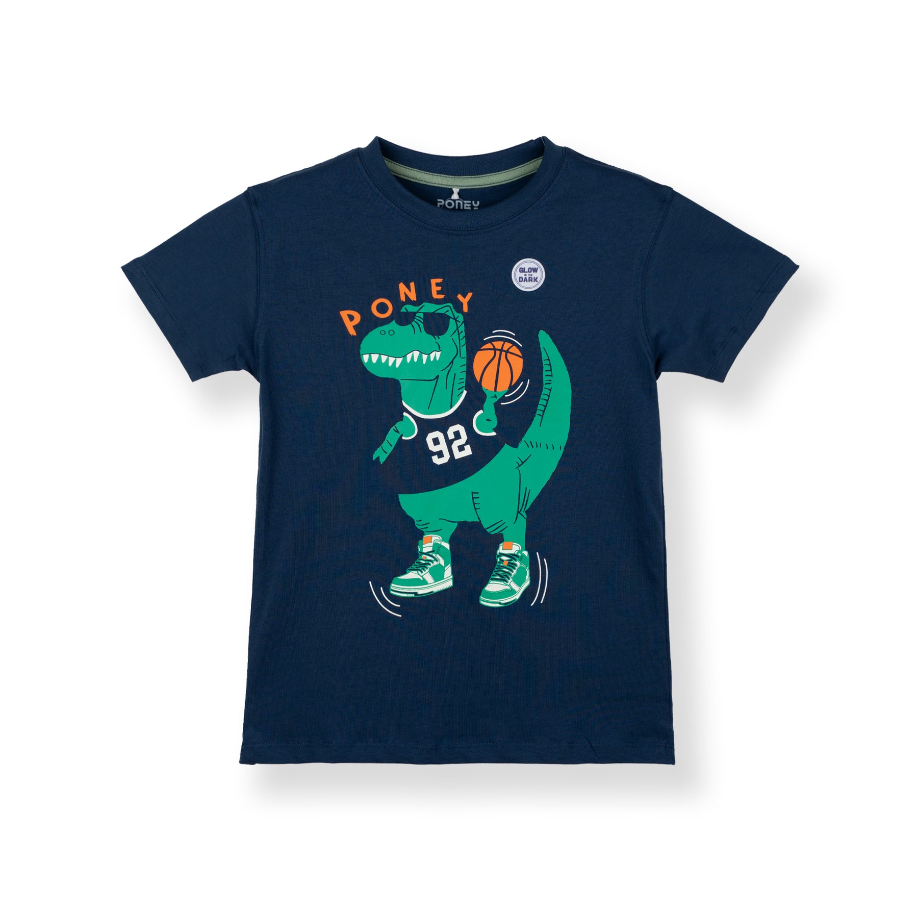 Poney Boys Navy Hoopsaurus Regular Fit Short Sleeve Tee