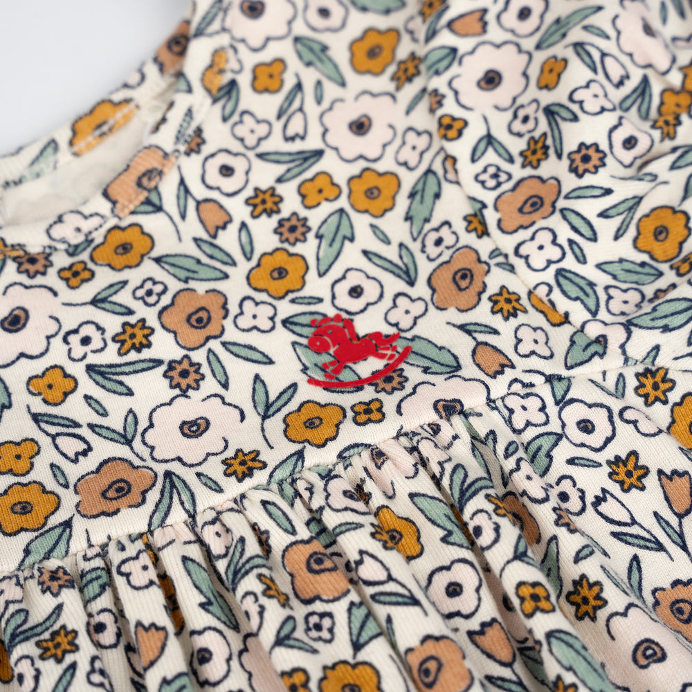 Poney Baby Girls Cream Flower Days Short Sleeve Dress