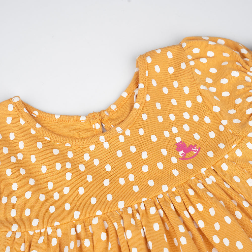 Poney Baby Girls Mustard Pastel Dots Short Sleeve Dress