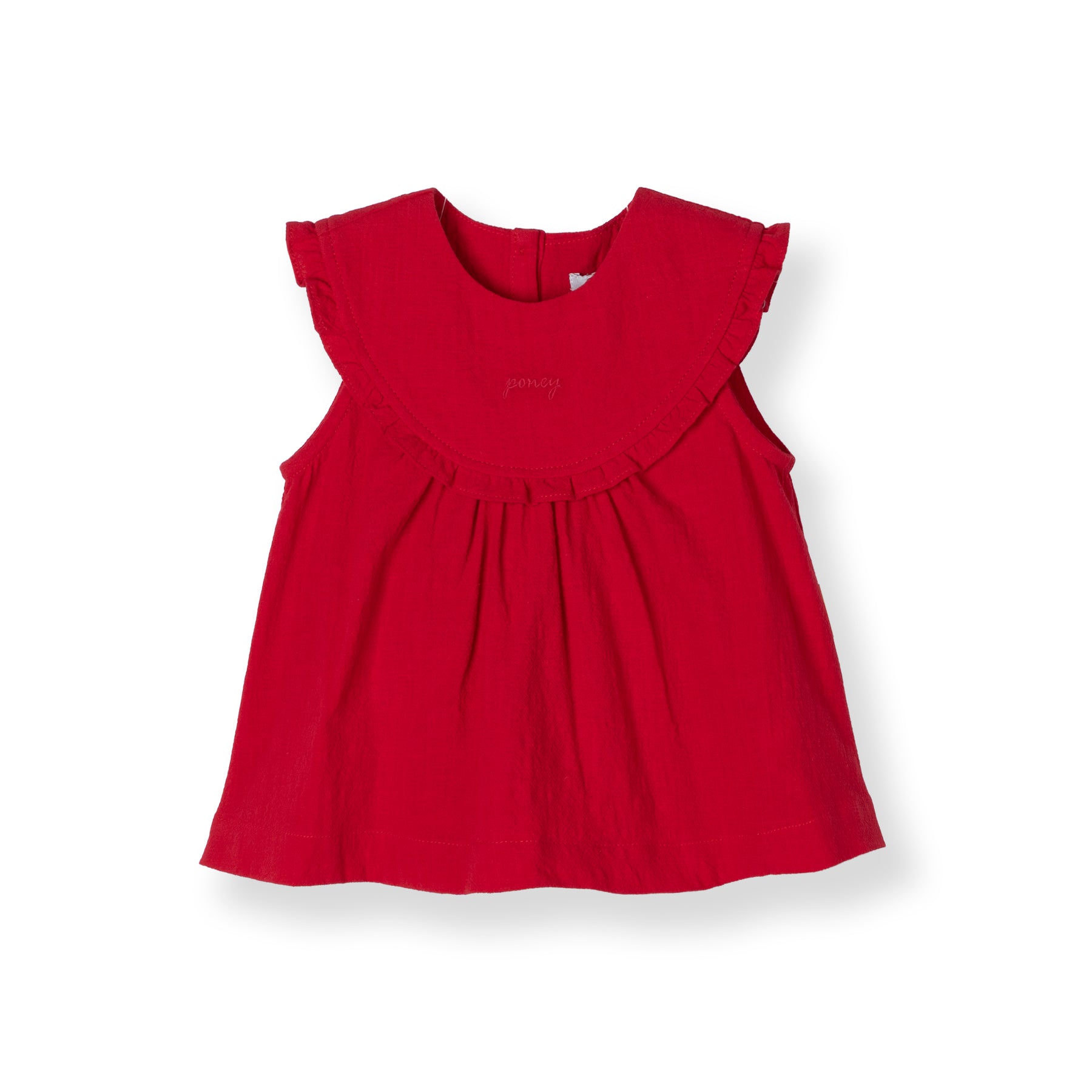 A sweet blouse crafted from soft textured cotton, designed with a charming, ruffled collar