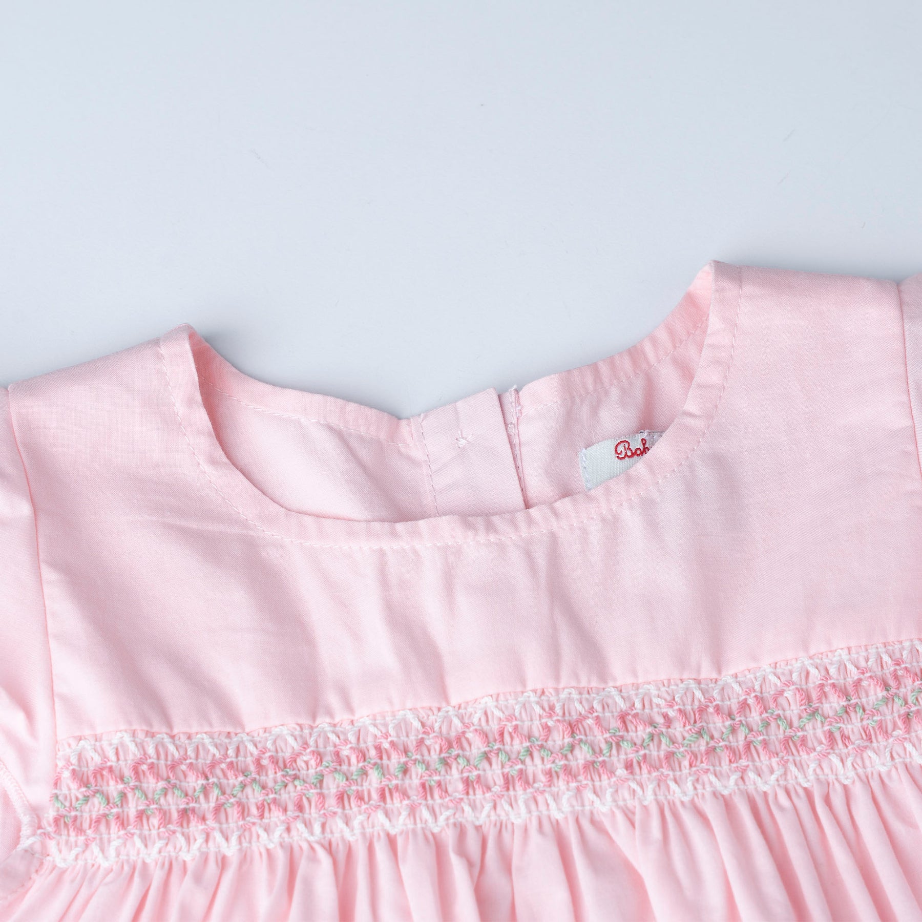 elasticated hem to give a puffy look and smocking on front chest for extra cuteness.