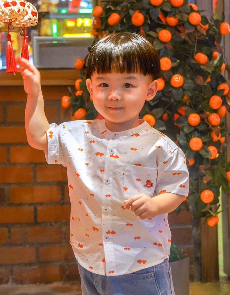 Short-sleeved shirt in soft cotton with loose fit, grandad collar, buttoned down at front with a