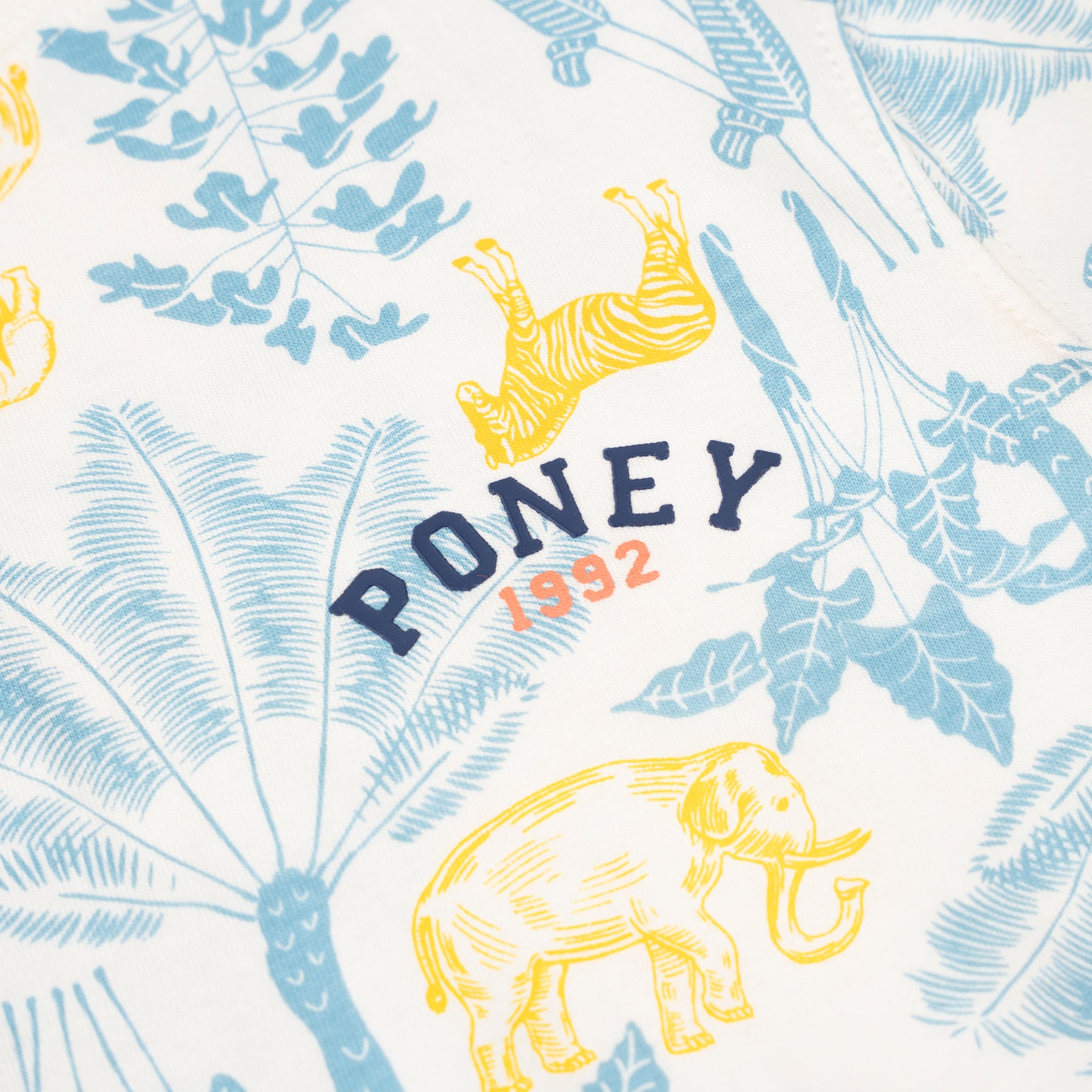 Go wild in the jungle! This stylish tee is covered in safari animals and tropical leaves for a nature-inspired
