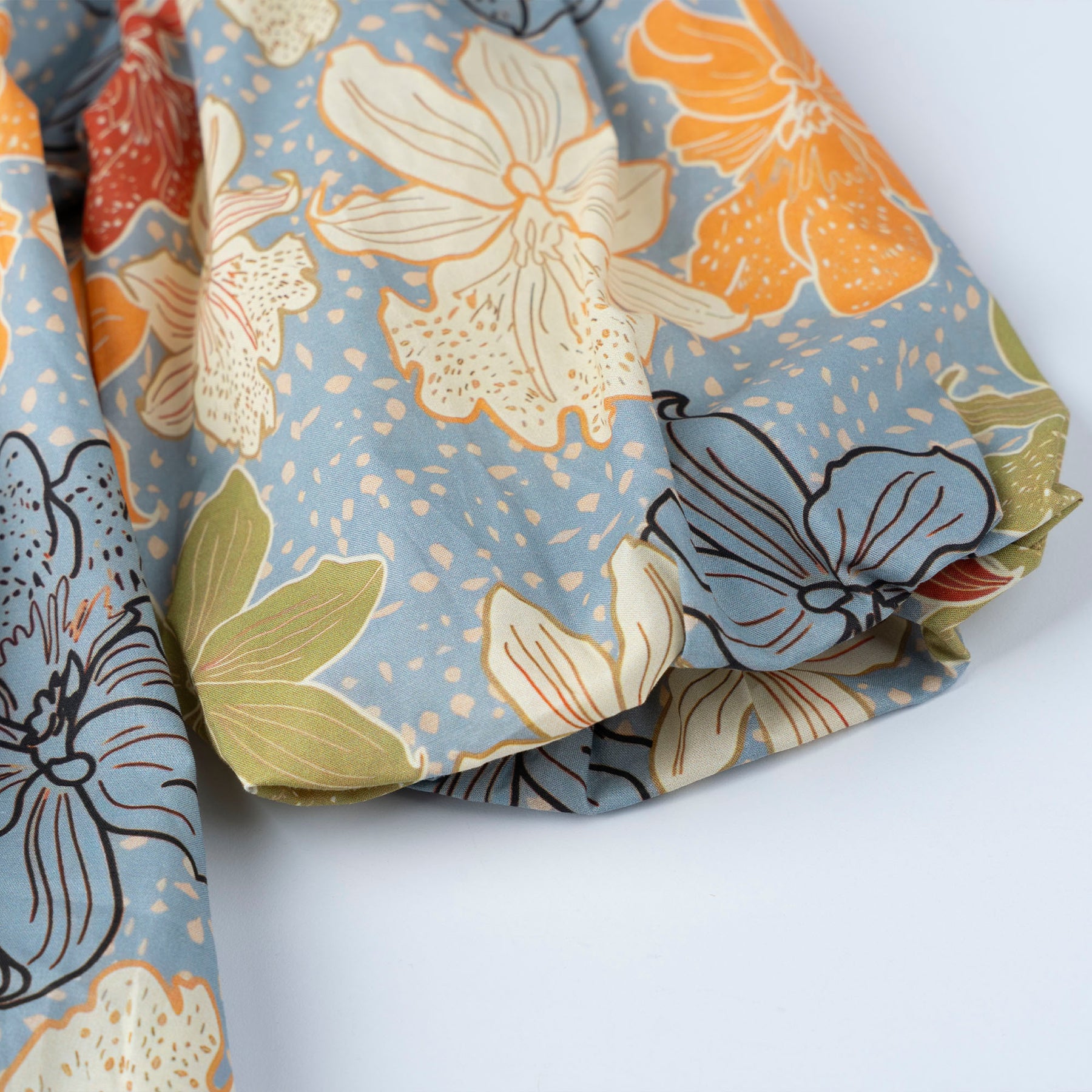 A blouse with that sweet, old-school Raya charm. The muted florals bring a soft vintage touch, while