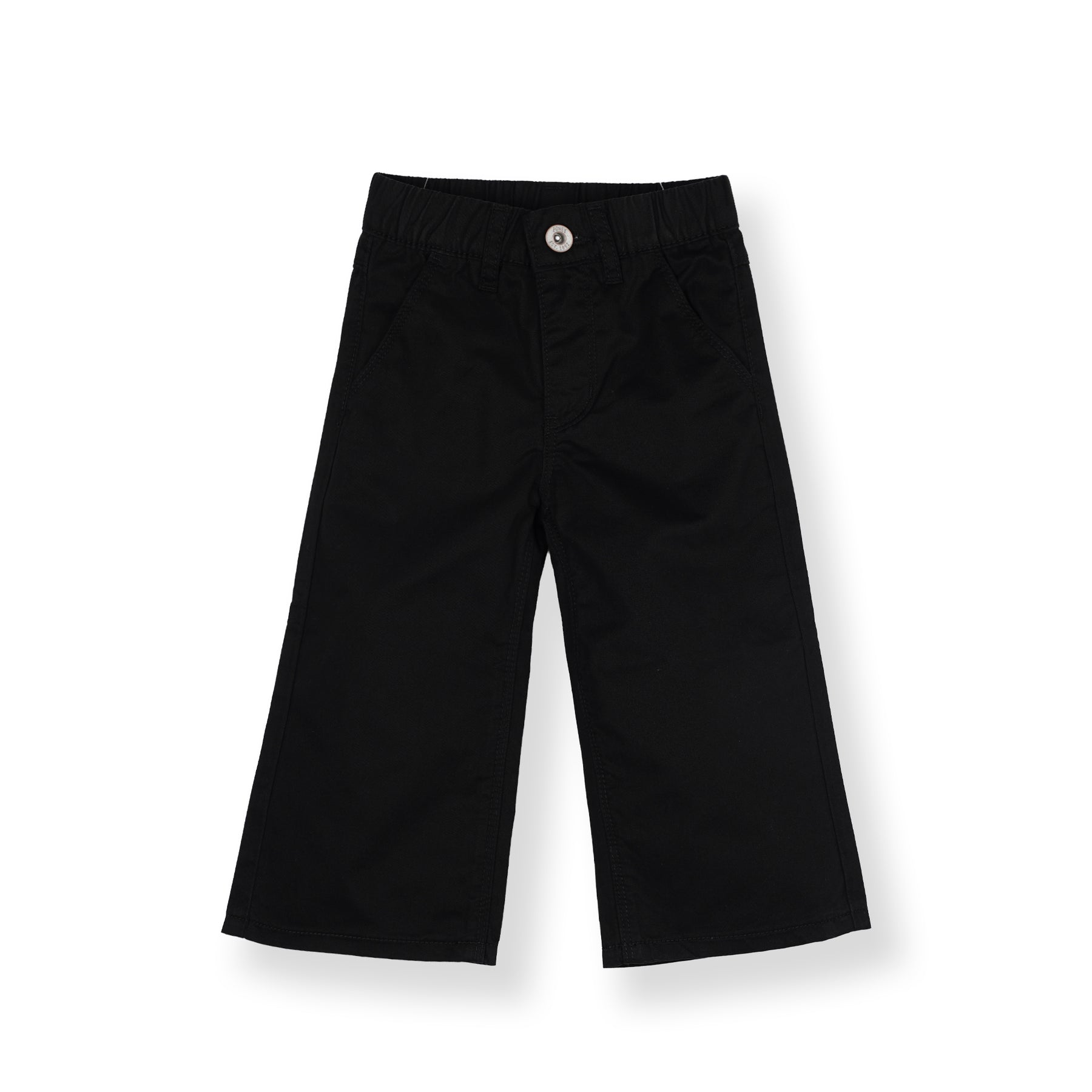 Wide leg long pants with an elactic waistband and front button fastening. Front pockets and