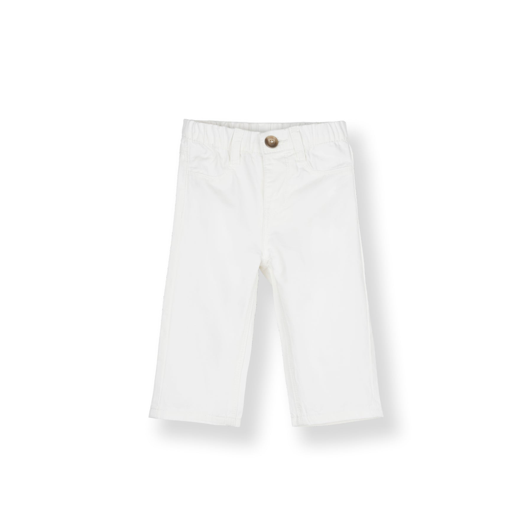 Long pants in straight cut with an elactic waistband and front button fastening. Mock