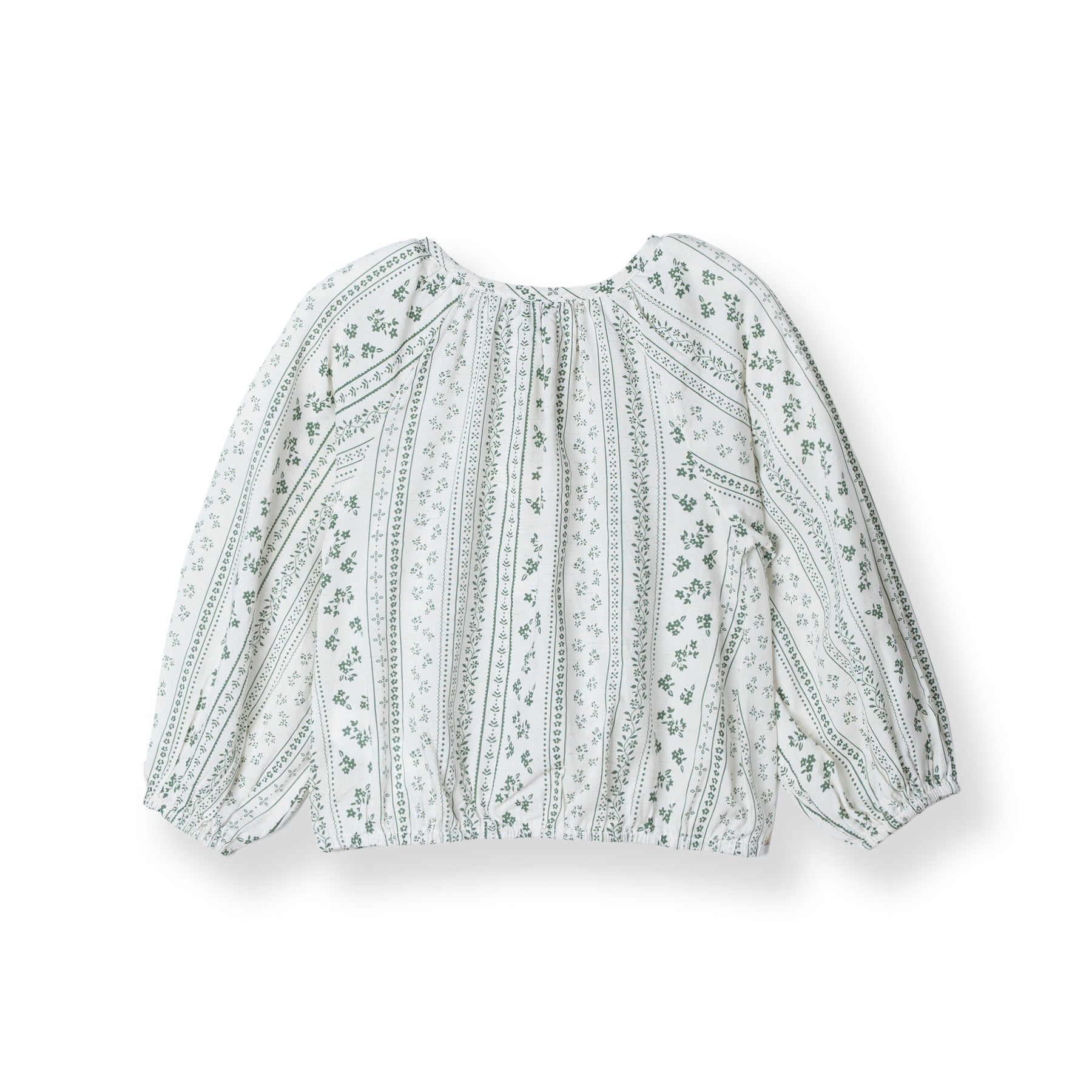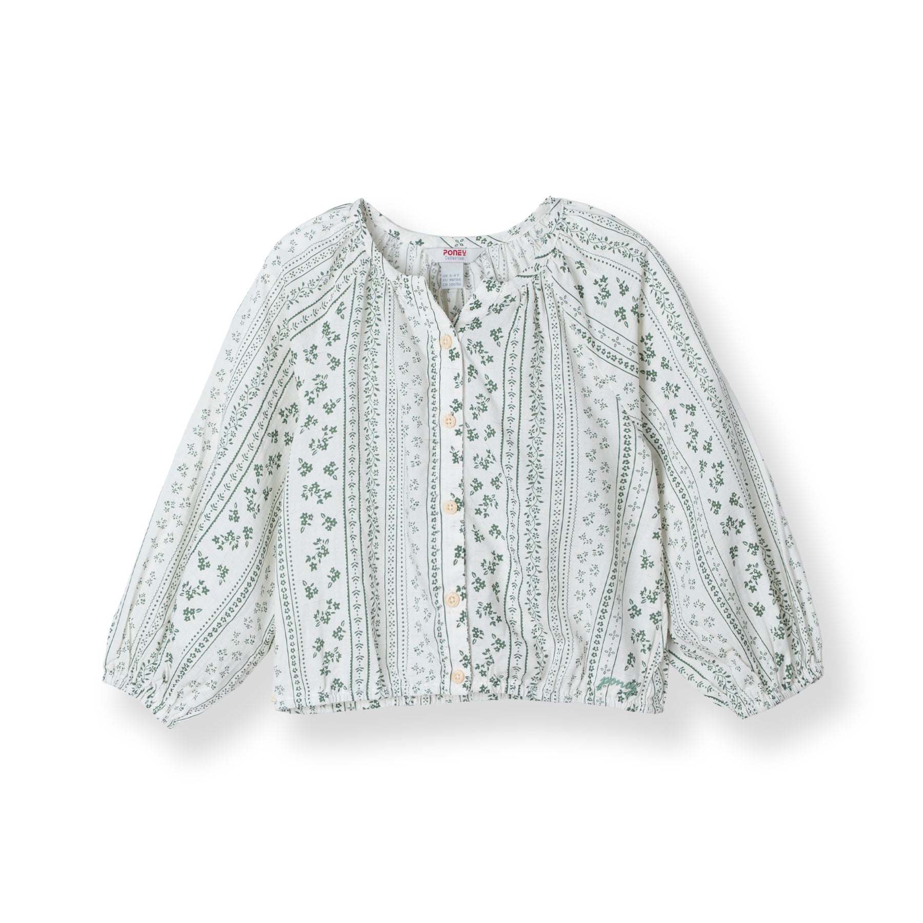 A relaxed long-sleeved blouse crafted from breathable printed cotton, adorned with an