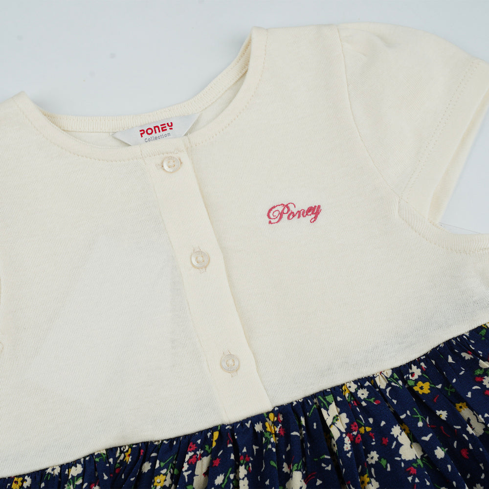 Poney Girls White Flowery Gathered Detail Short Sleeve Dress