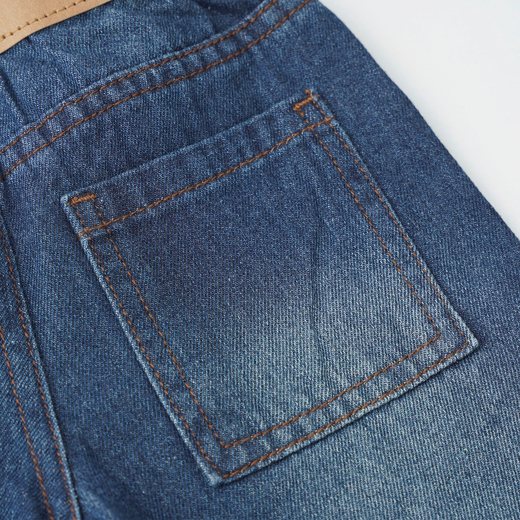 patch pockets on the back. Featuring stone wash effect and it completed with a logo leather