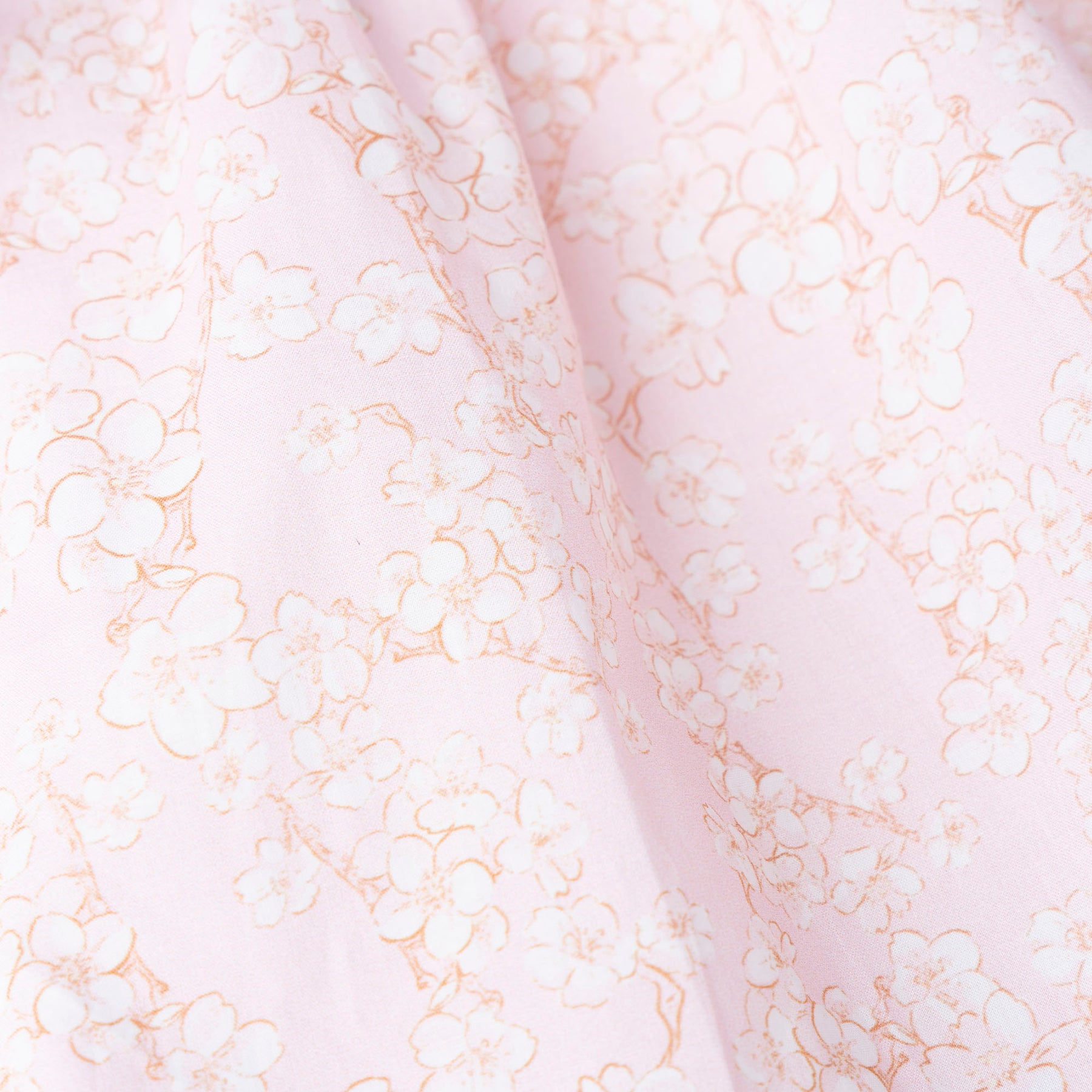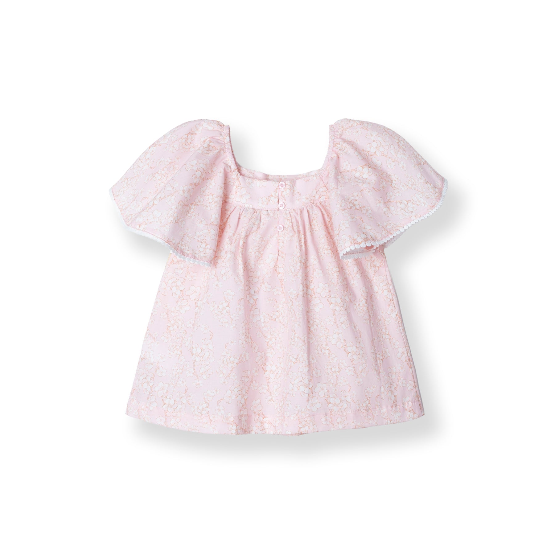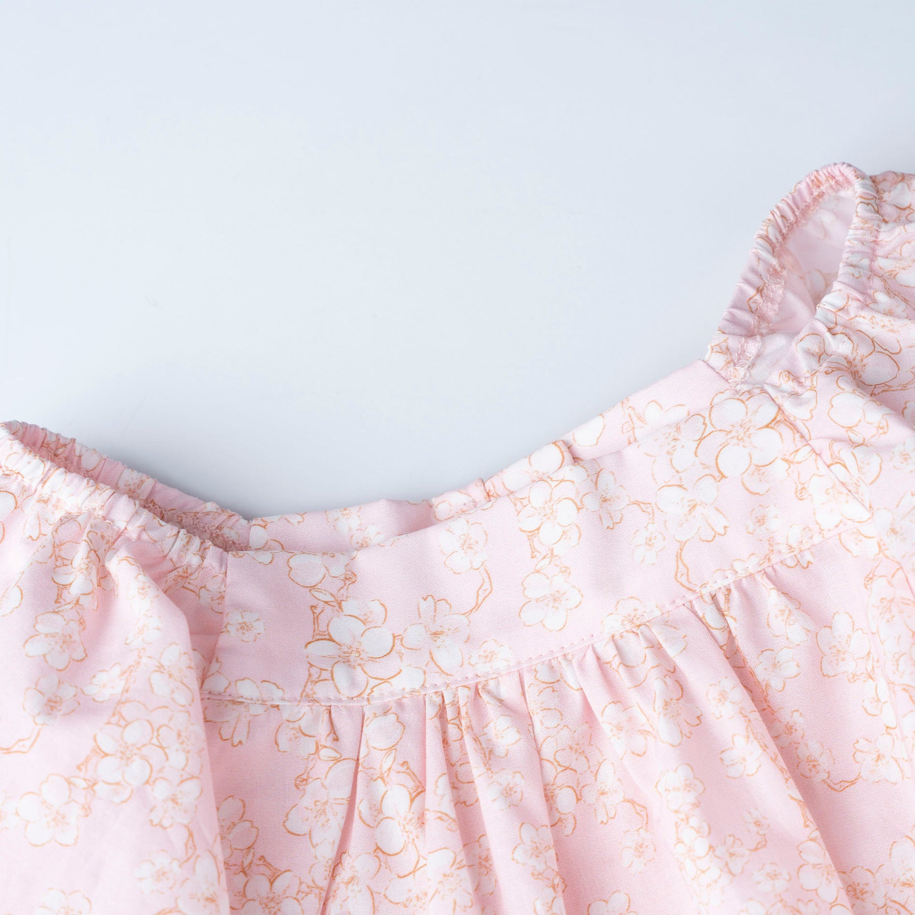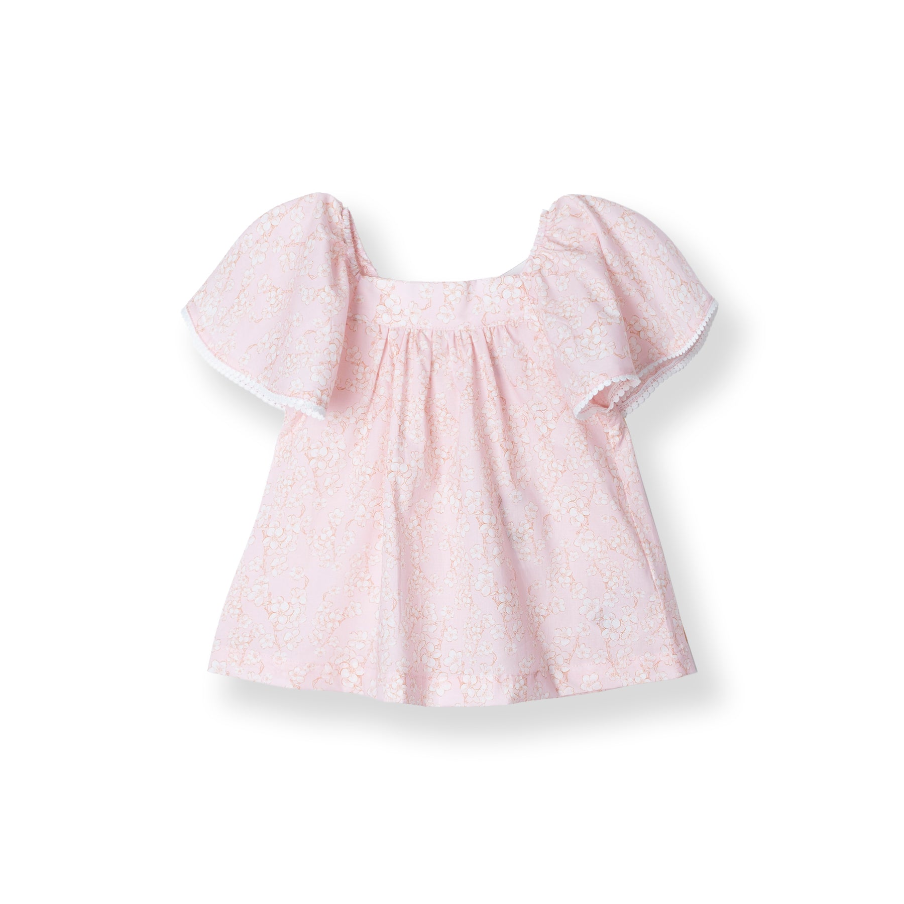 A soft short-sleeved blouse crafted from 100% printed cotton, circular sleeves delicate with a