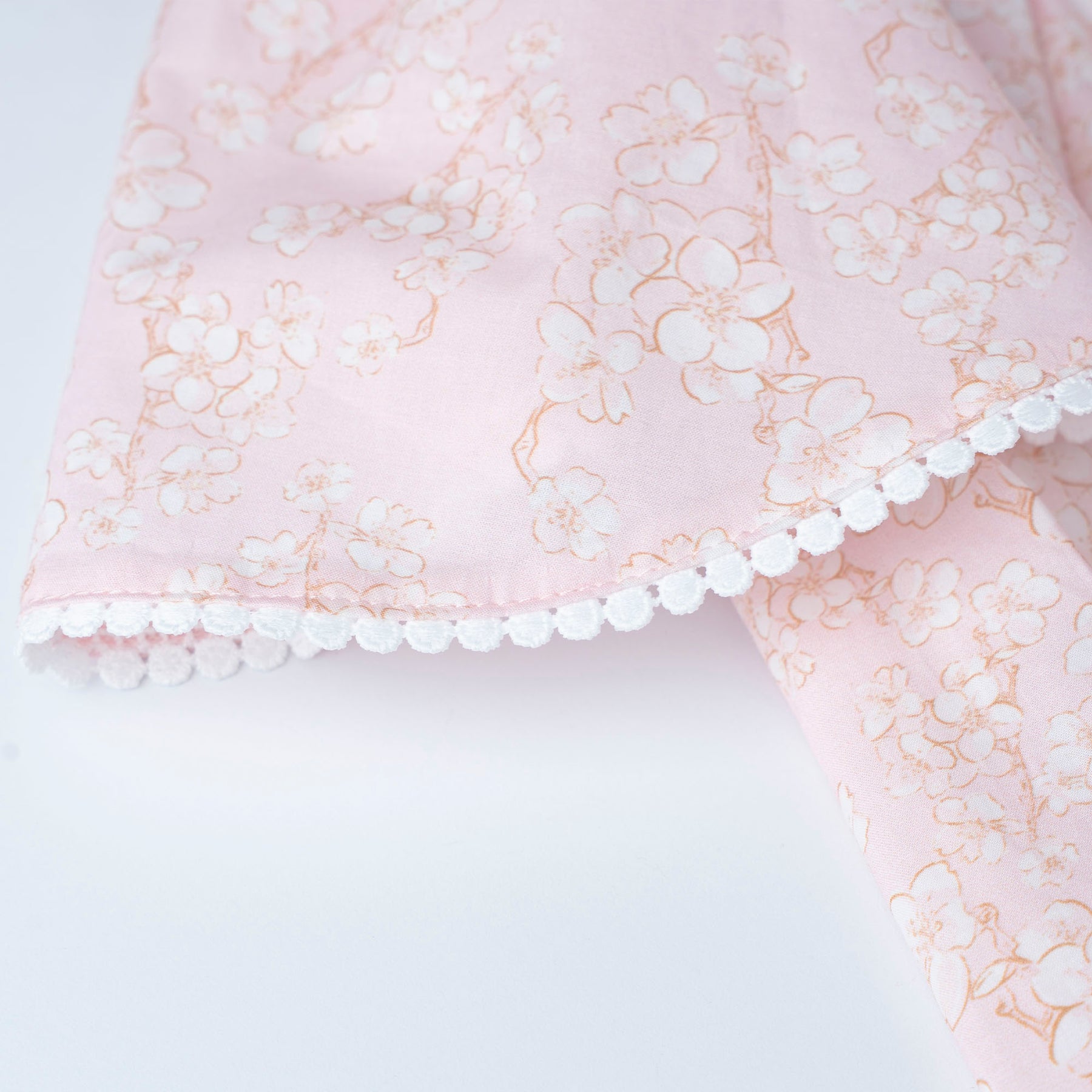 lace trims, featuring a charming oral motif. Designed with a relaxed silhouette and gentle