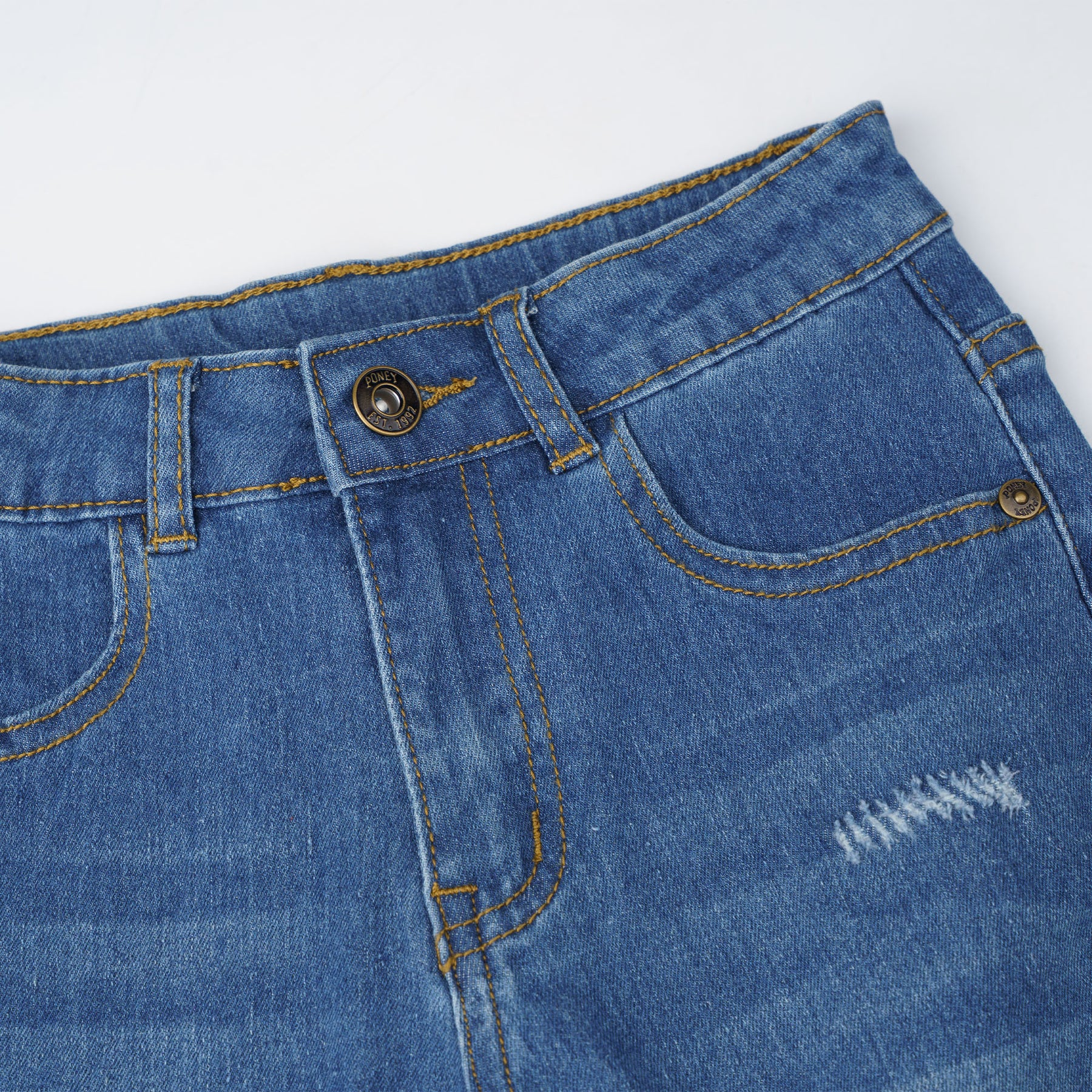 pockets and patch pockets on the back. Featuring whisker wash effect and ripped details. It