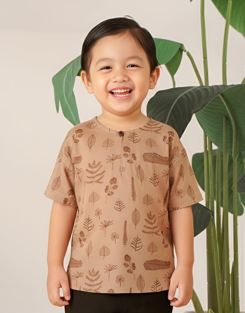 Simple, warm and extra charming. This earthy-toned shirt gives a cosy Raya look while staying gentle