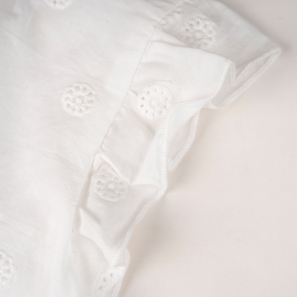 Keep your little one looking adorable with this sleeveless romper dress. Designed with delicate pleated details at the front and charming mini ruffle sleeves. This romper combines elegance with comfort, the back placket ensures easy dressing, making it a perfect choice for special occasions or casual outings.