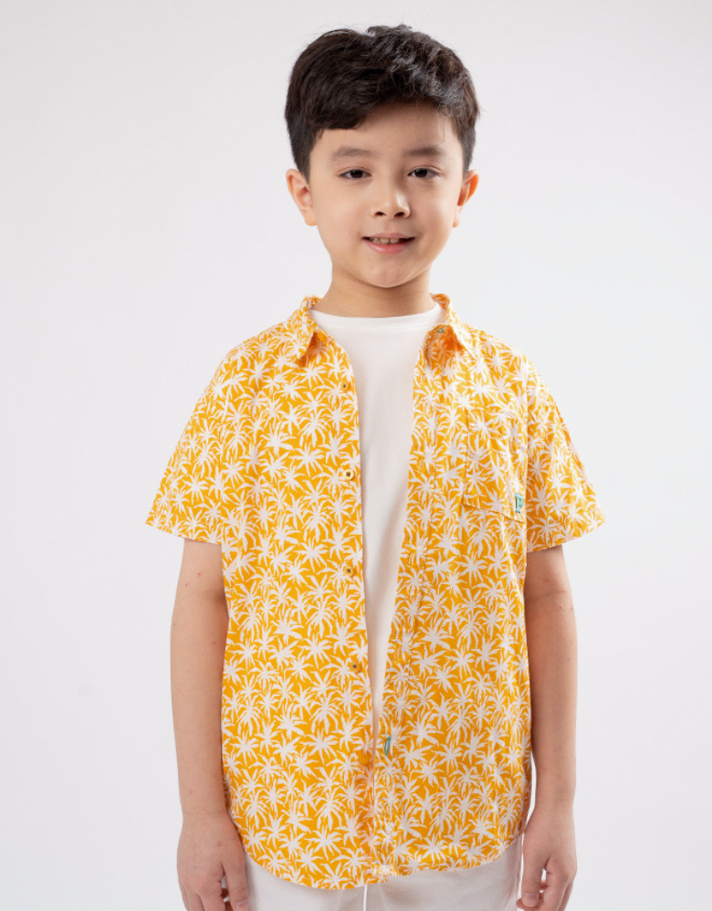 Poney Boys Mustard Palm Tree Short Sleeve Shirt