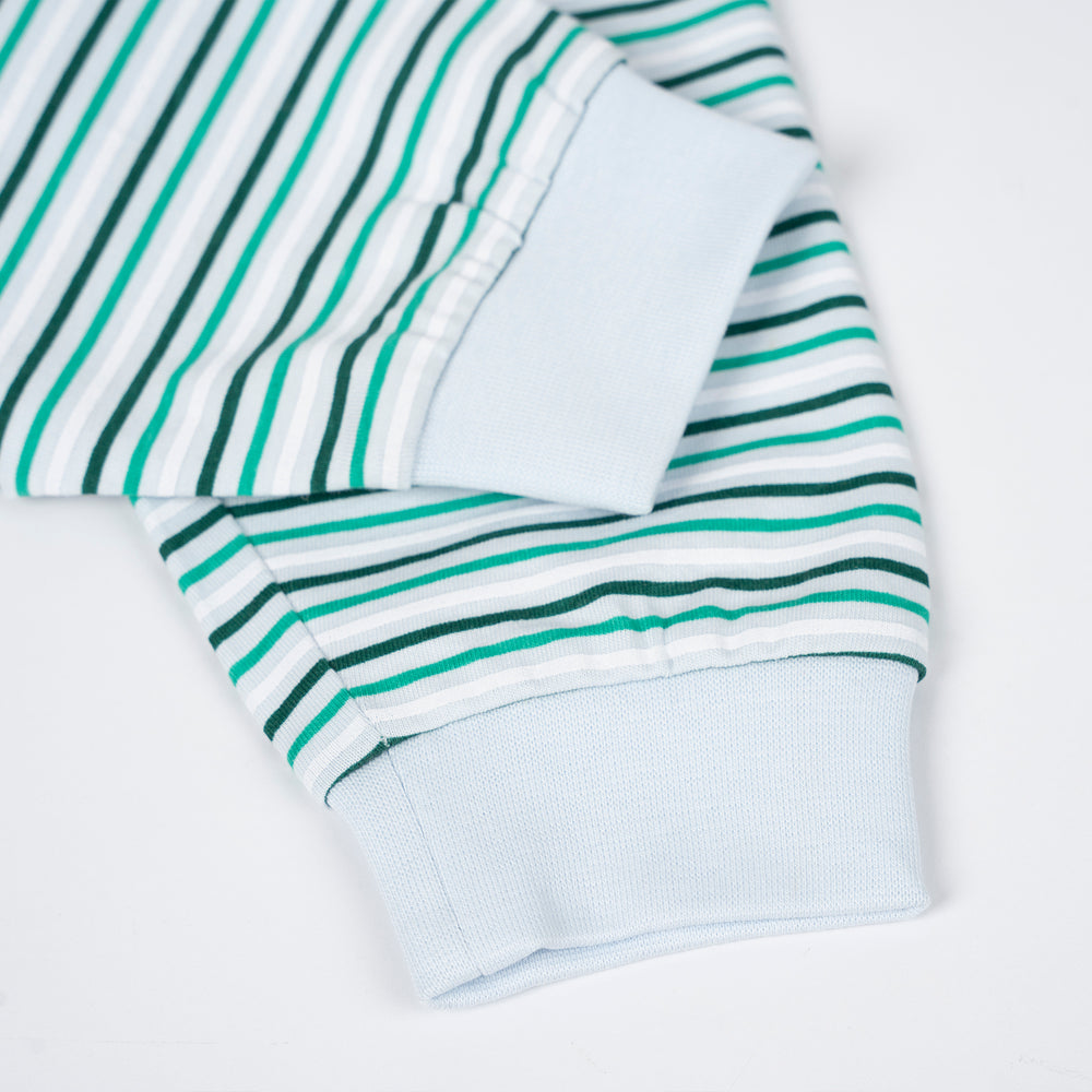 Two-piece set pyjamas crafted with soft cotton jersey which is gentle on delicate skin. Featuring a long-sleeved top with ribbed neckline and cuffs, snap buttons on one shoulder for easy changing. Paired with a long pants with an elasticated waistband for comfortable fit