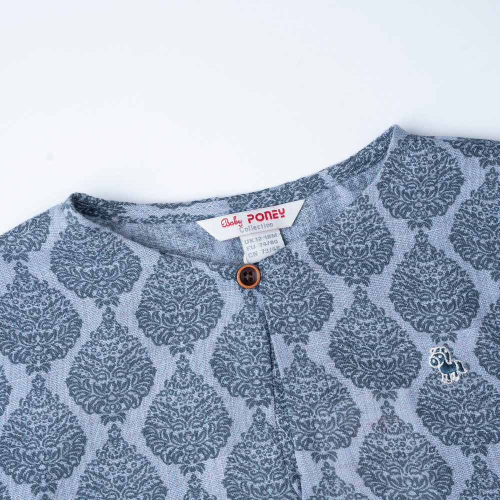 Dress your little one during Raya festives in our stylish baby boy shirt. Designed to blend tradition with modern comfort. This shirt features drop shoulder design, relaxed silhouette with side panels and finished with an iconic Poney logo embroidery. This shirt pairs beautifully with our pants from the Eid Collection range.