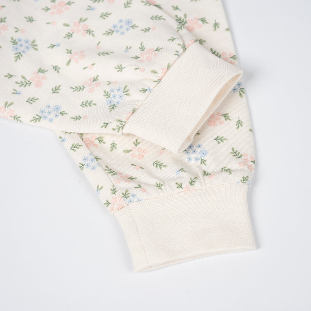 Two-piece set pyjamas crafted with soft cotton jersey which is gentle on delicate skin. Featuring a long-sleeved top with ribbed neckline and cuffs, snap buttons on one shoulder for easy changing. Paired with a long pants with an elasticated waistband for comfortable fit