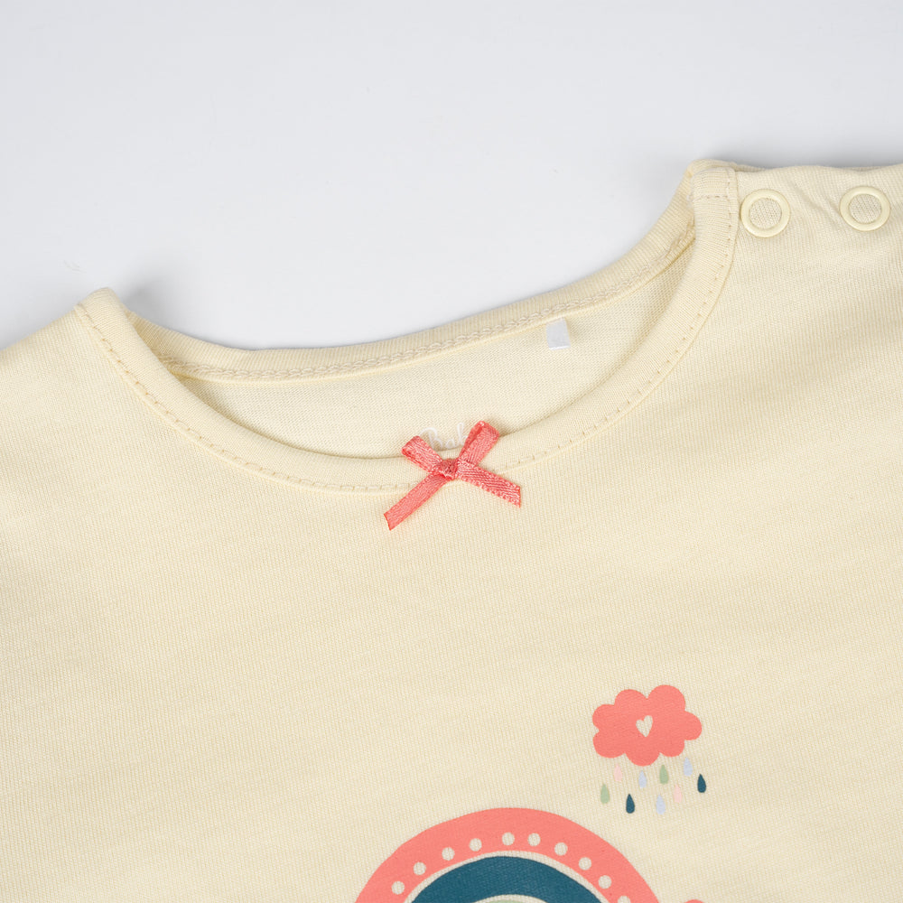 Two-piece set pyjamas crafted with soft cotton jersey which is gentle on delicate skin. Featuring a long-sleeved top with ribbed neckline and cuffs, snap buttons on one shoulder for easy changing. Paired with a long pants with an elasticated waistband for comfortable fit