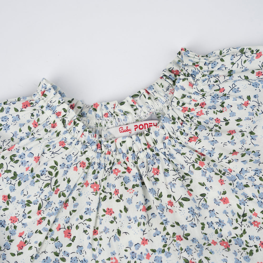 Poney Baby Girls Lt Blue Flowers Short Sleeve Blouse & Legging Set