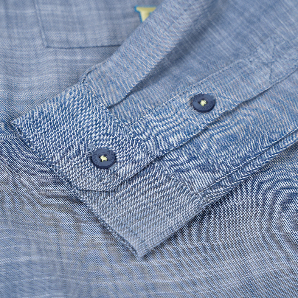 Shirt in an airy weave made from cotton. Grandad collar, buttoned down at front and a double-layered yoke at the back. Open chest pocket with an embroidered logo on it and long sleeves with buttoned cuffs. Slightly longer at the back with a gently rounded hem.