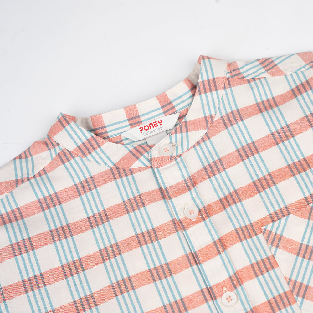 Poney Boys Orange Abu's Checked Short Sleeve Shirt