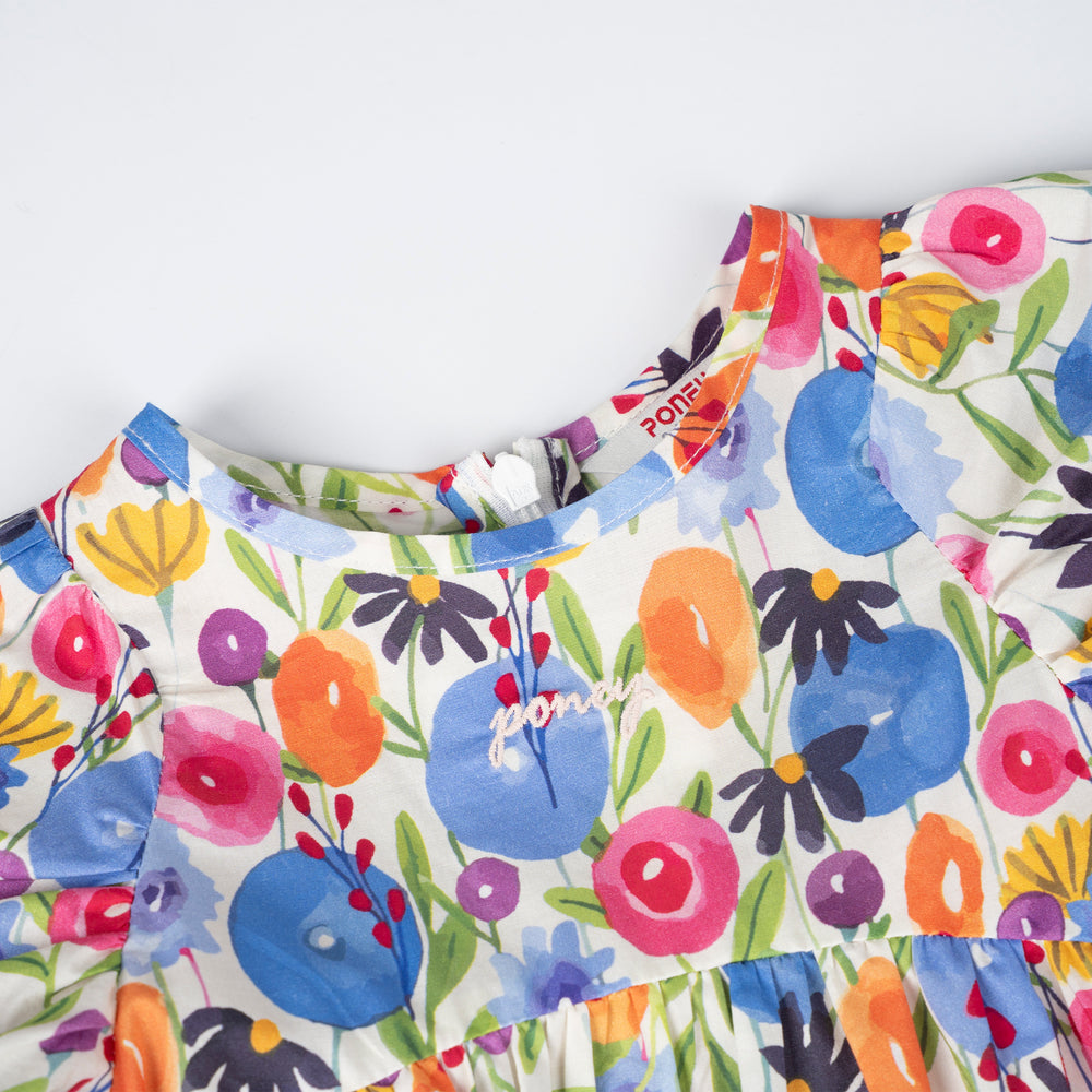 Poney Girls Cream Vibrant Floral Short Sleeve Dress