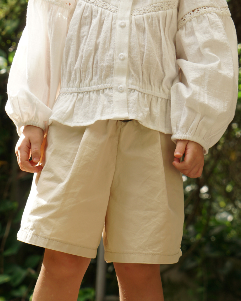 These stylish khaki shorts are crafted from 100% cotton mini twill, ensuring durability and comfort. The included belt adds a fashionable touch, making them a versatile piece for casual and semi-formal outfits.