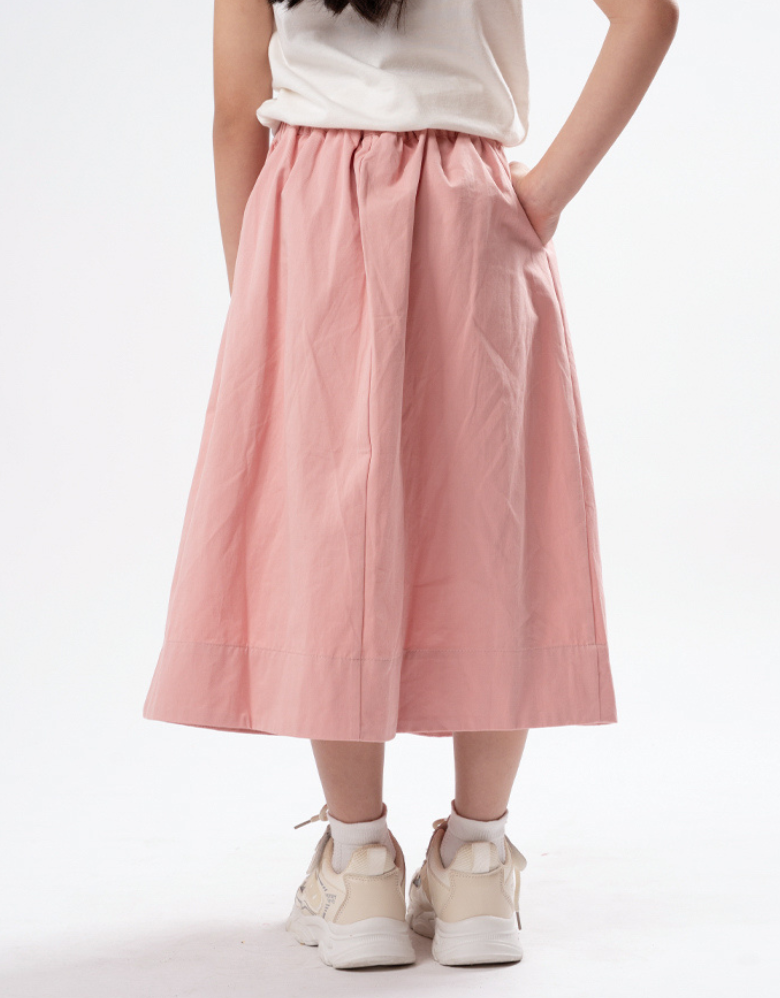 Poney Girls Pink Twill Pleated Long Skirt