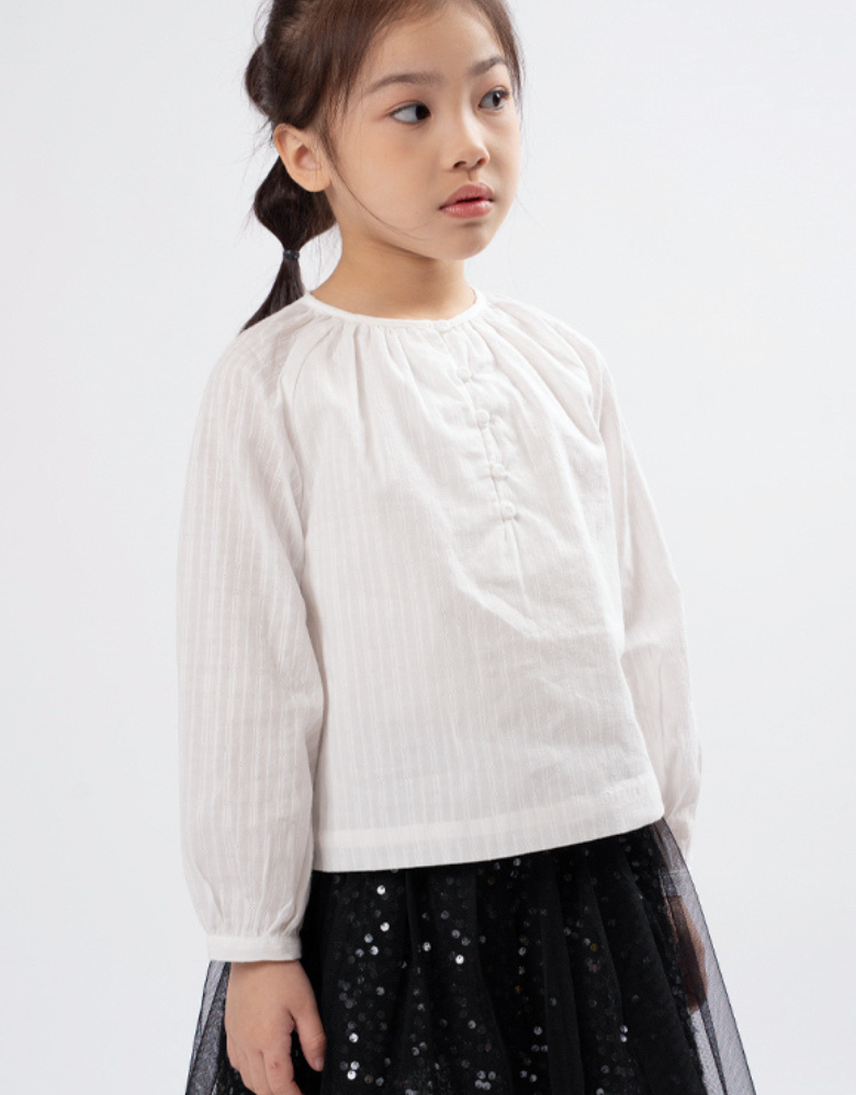 A soft and delicate look for your girls everyday outfit with this cotton jacquard blouse. This piece is cut to a comfortable regular fit, raglan puff sleeves with buttoned cuffs, buttoned-up front and a Poney embroidered logo on hem. The round neckline features gathered details for a beautiful finish.