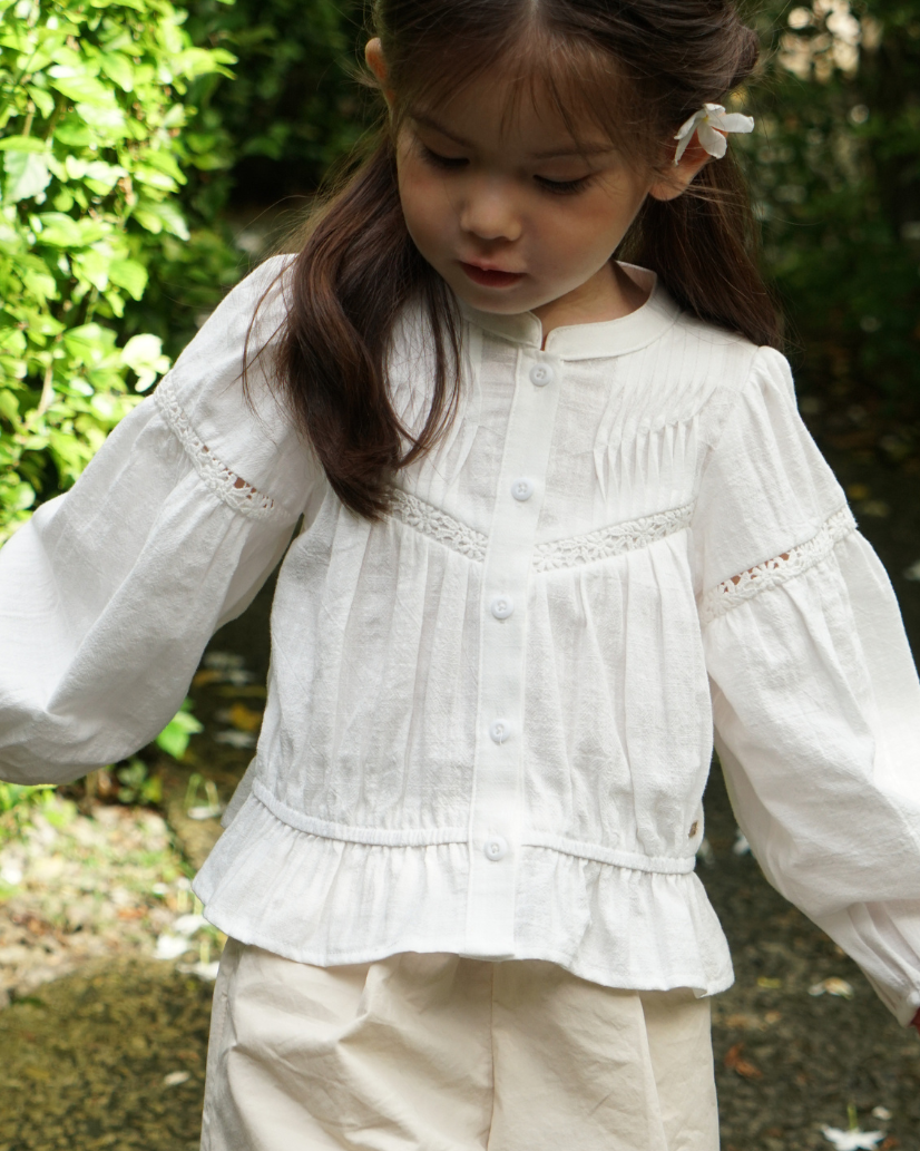 Poney Girls White Elegant Lace Insert Long Sleeve Blouse