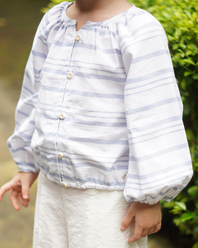 Poney Girls White Stripes Open Front Long Sleeve Shirt