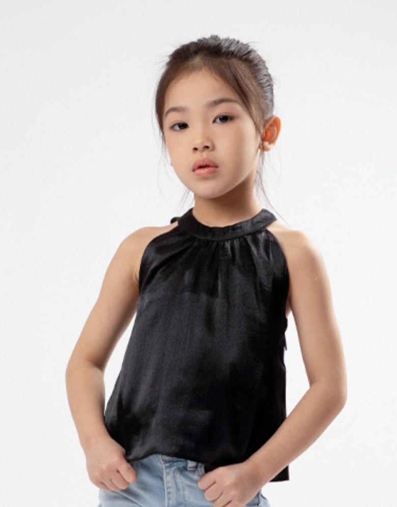 Sparkles, please! Stunning sleeveless halterneck, finished in shimmer fabric. The perfect top to wear throughout the festive season. This standout sleeveless top features a stand collar that can self tie at the back which added more stunning details on it.