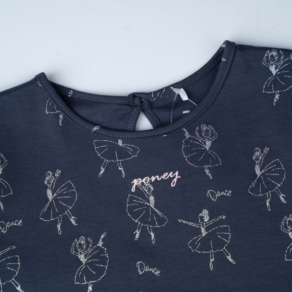 Poney Girls Dark Grey Midnight Ballerina Long Sleeve Dress
