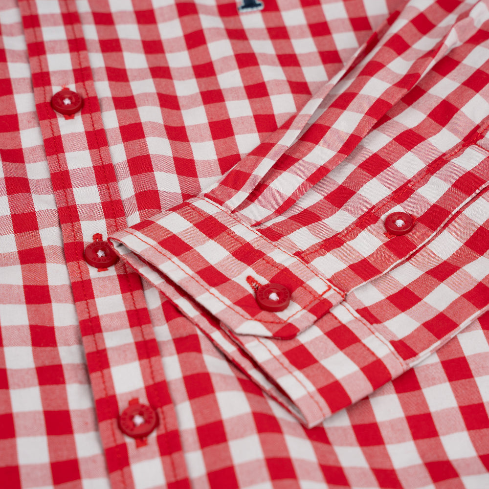 Poney Boys Red Goji Berry Gingham Long Sleeve Shirt