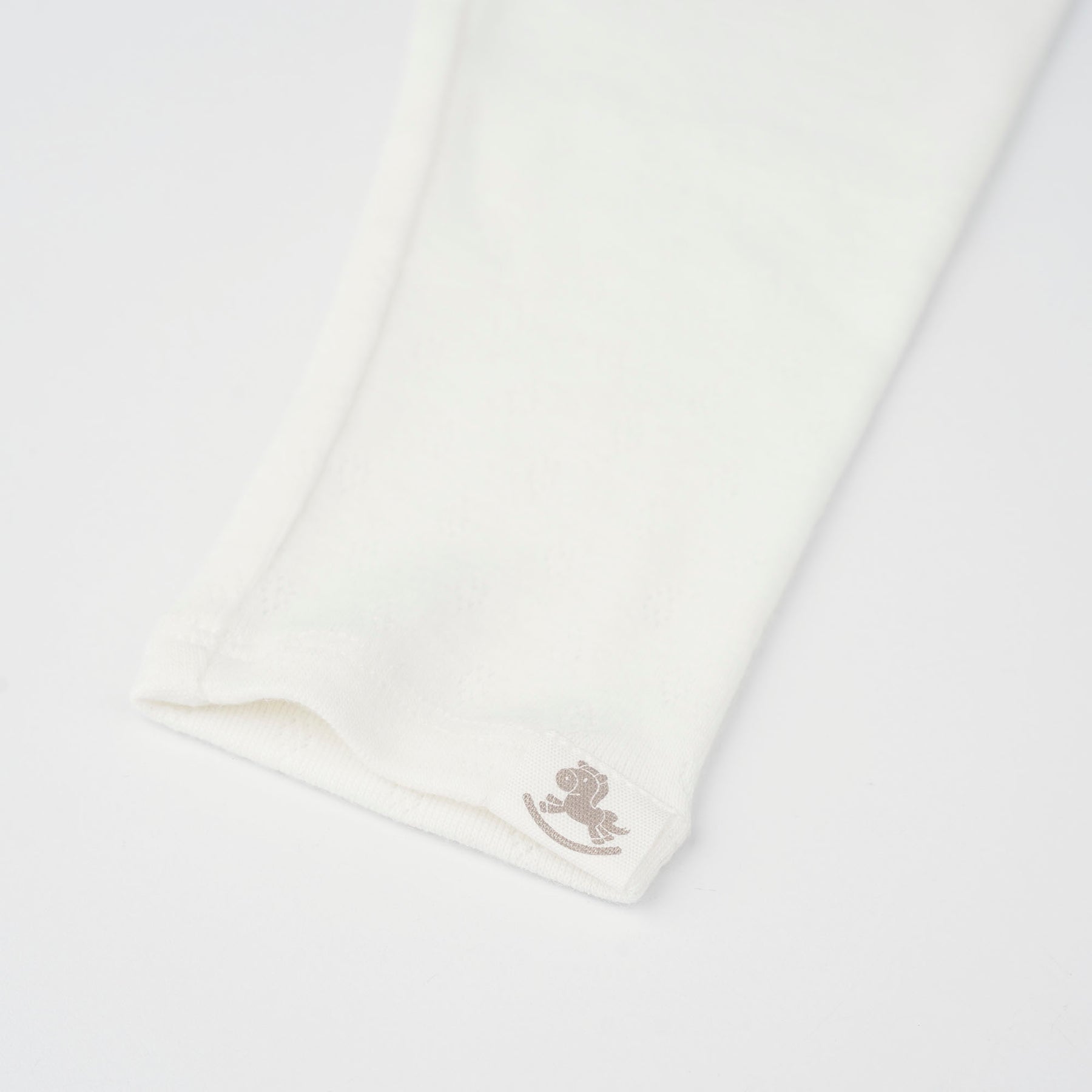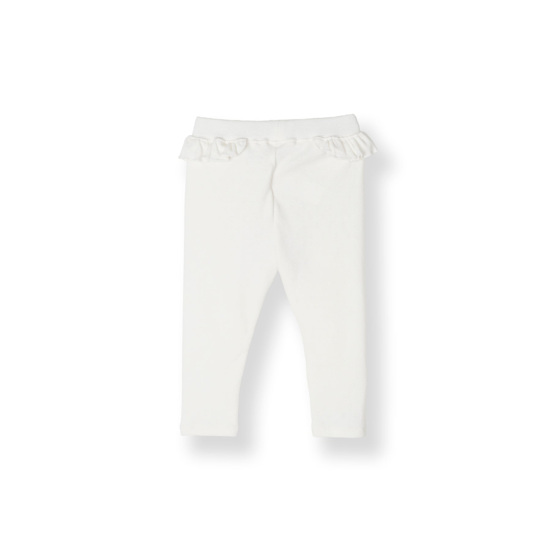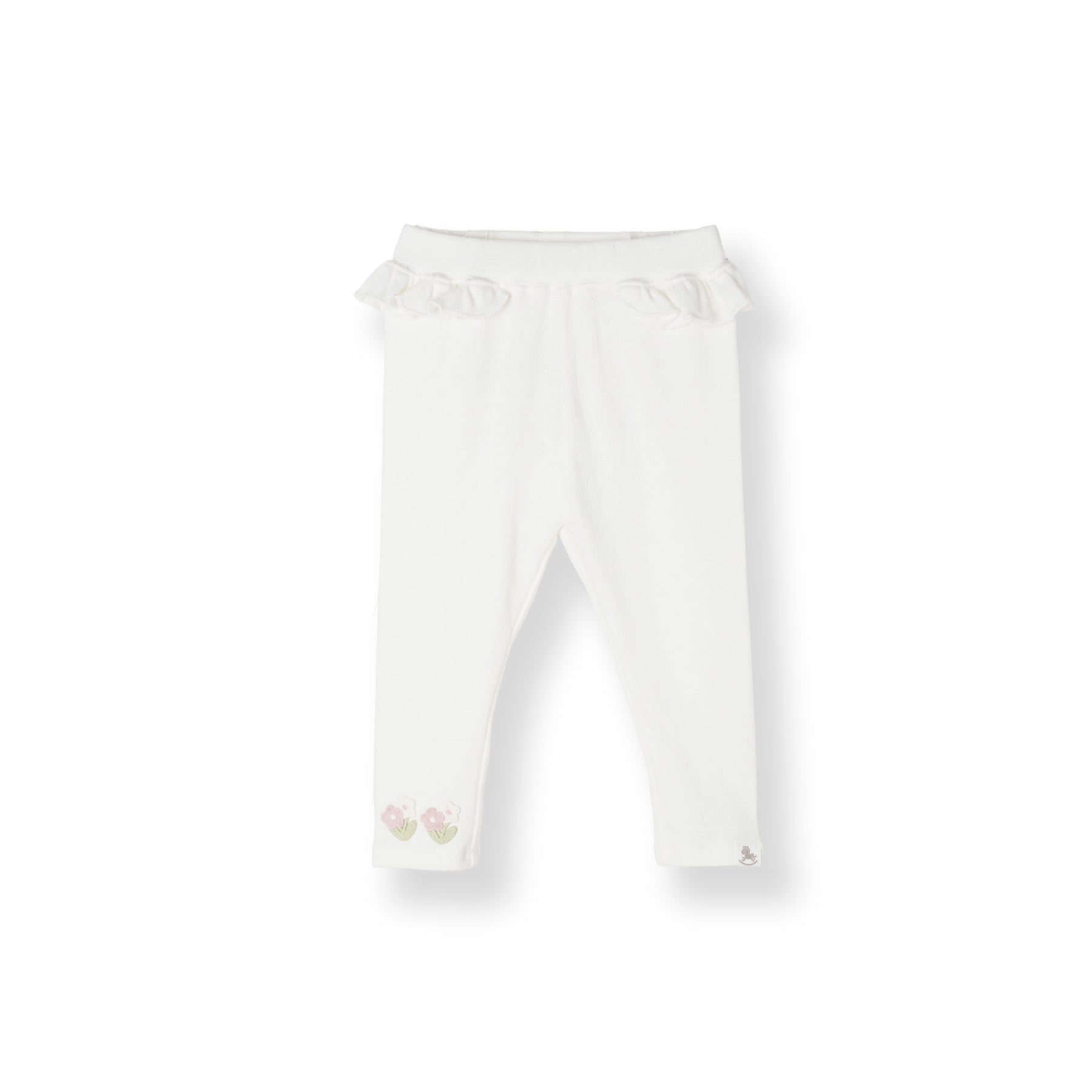 Pointelle legging with elasticated waistband and ruffles details. Floral applique and rocking