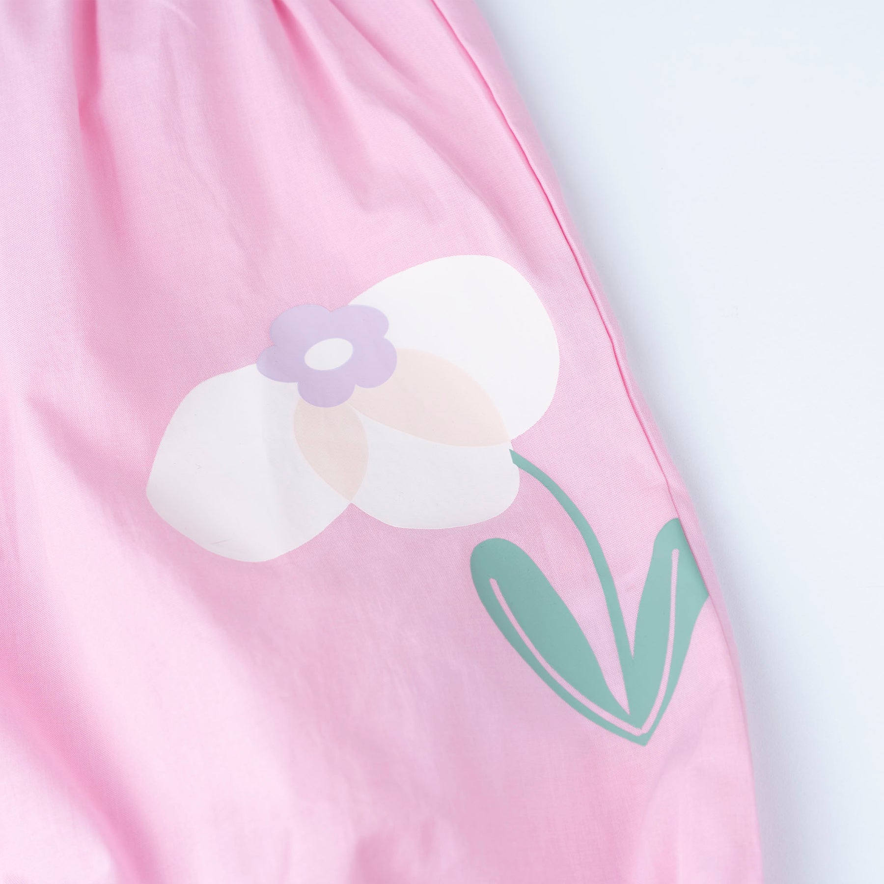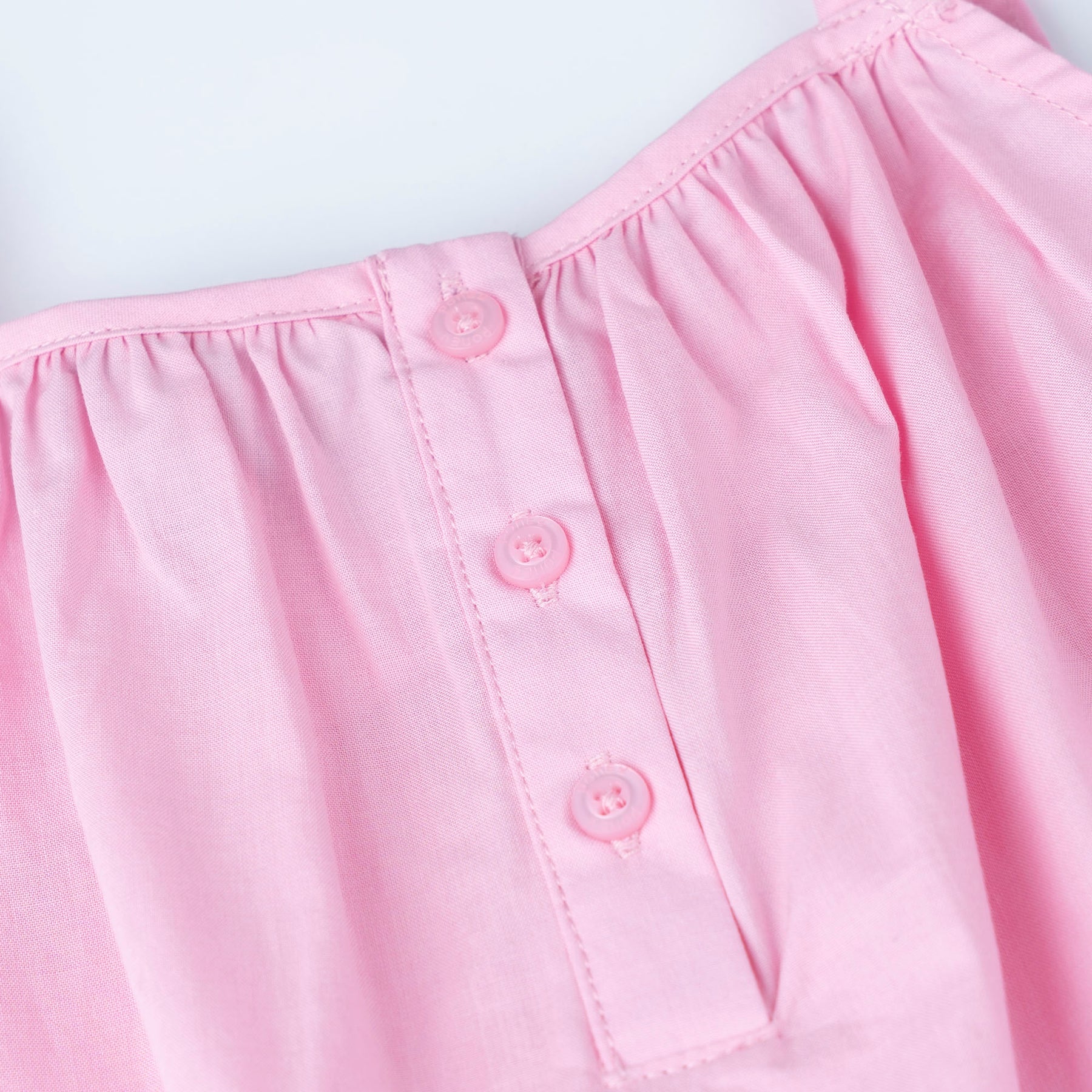 details, button opening at back, and a sweet oral motif. A perfect out t for active little