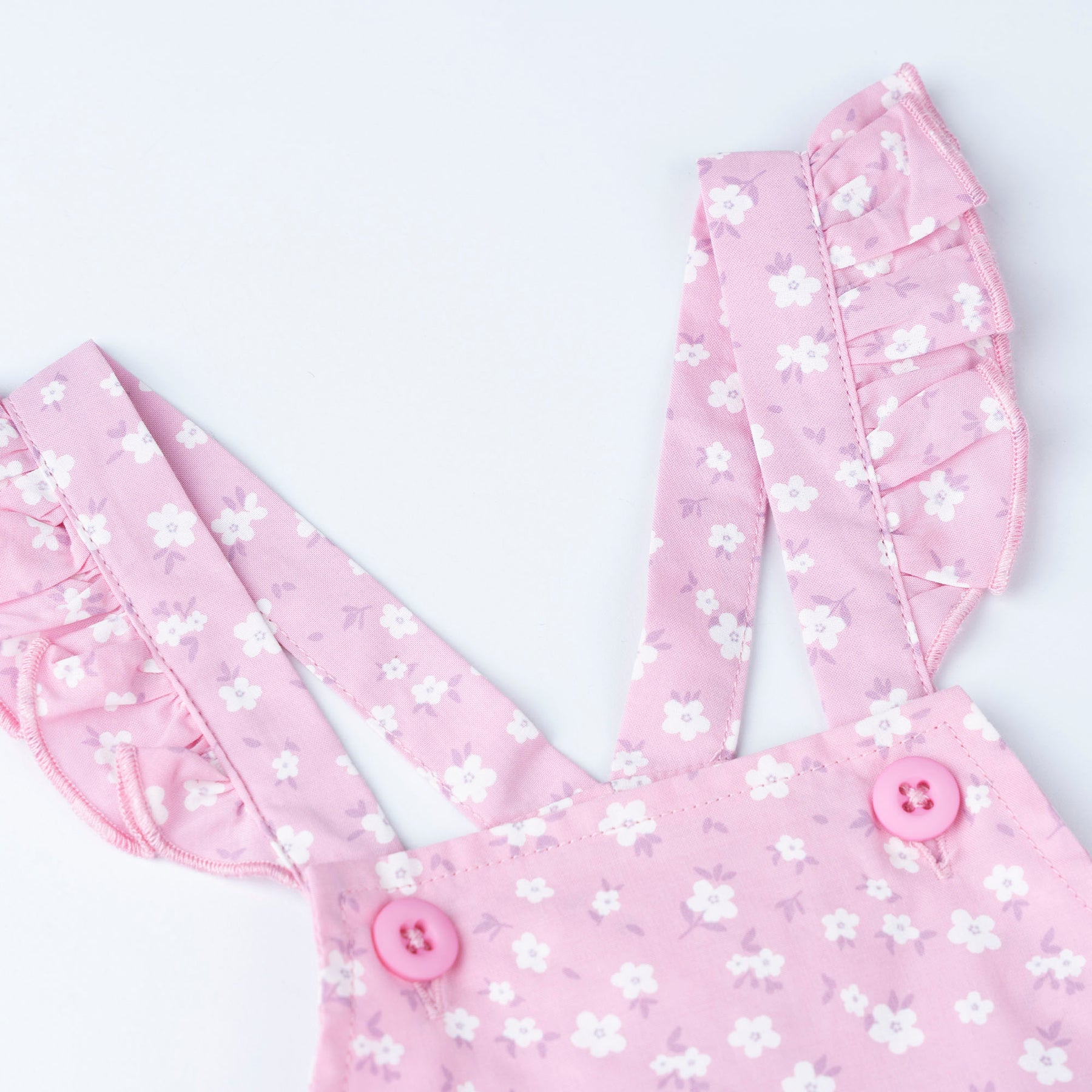 Cream Short Sleeves Top and Floral Print Dungaree Set