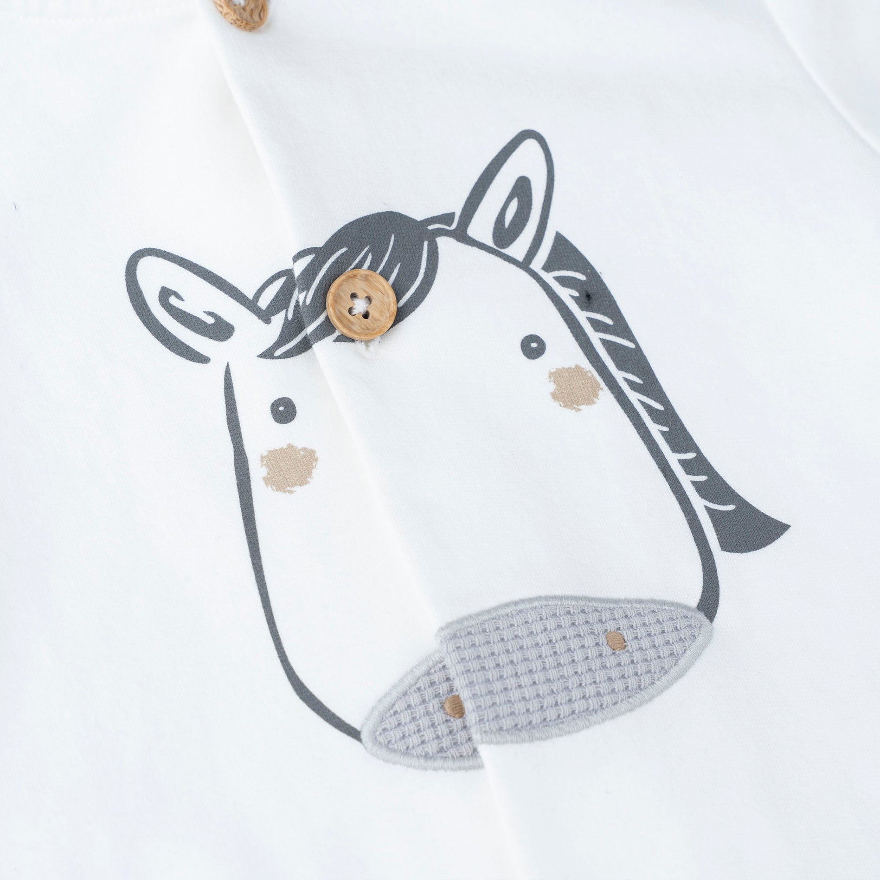 Hooded jacket with front adorable horse print and ribbed cuffs. Soft and breathable fabric