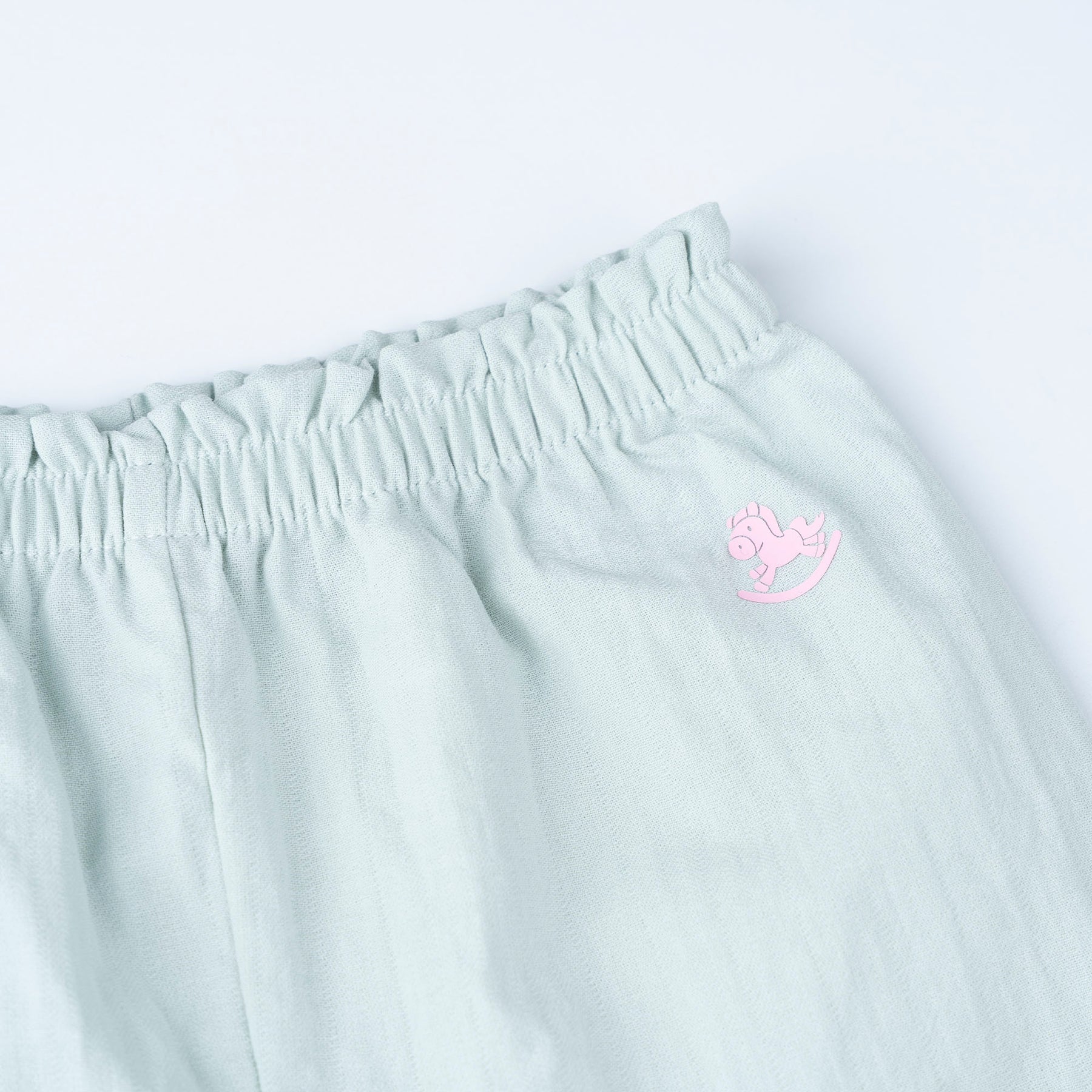 airy feel. Paired with comfy cotton long pants designed with gentle gathers and a floral