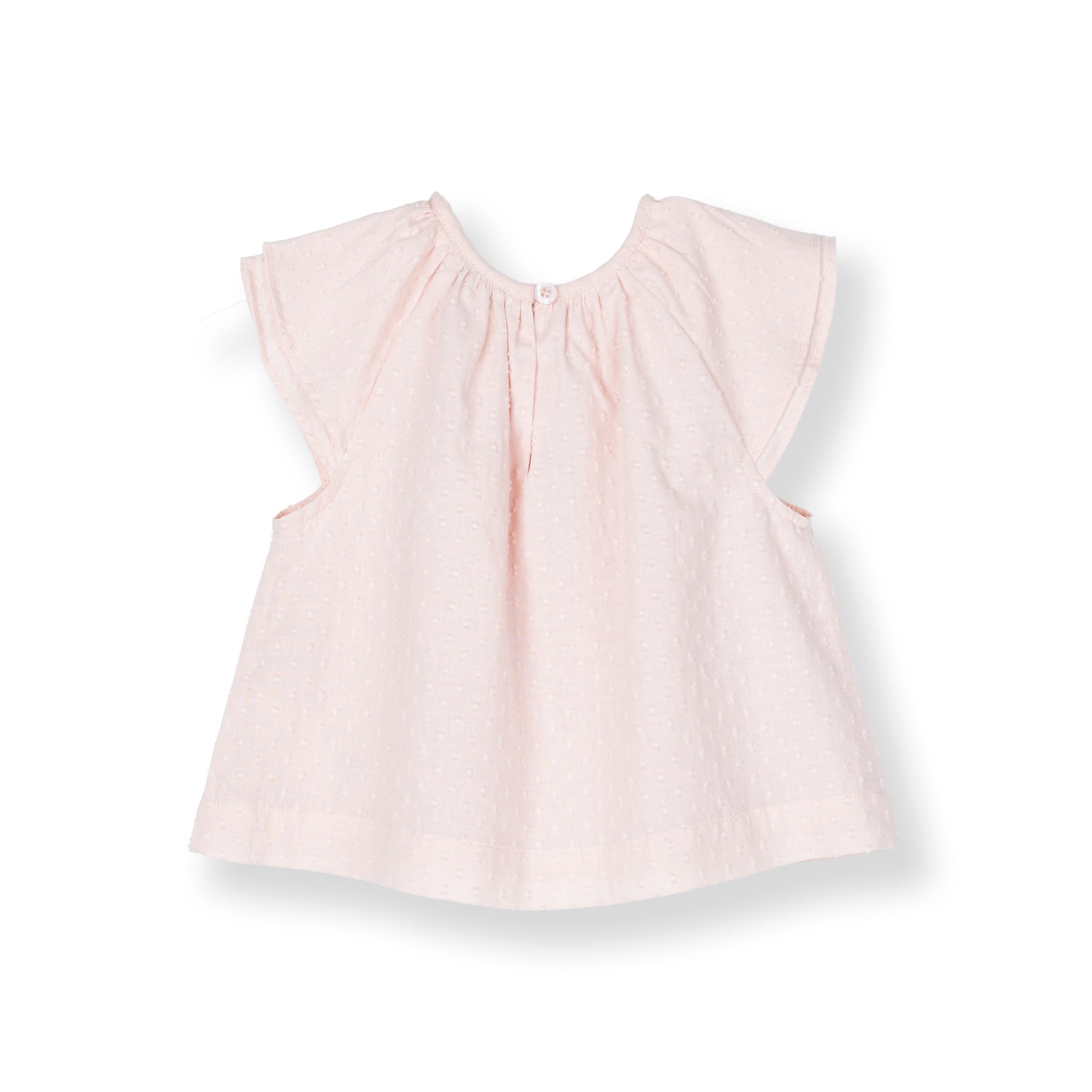 This short-sleeve blouse adds a touch of elevated charm with its subtle Swiss dots jacquard
