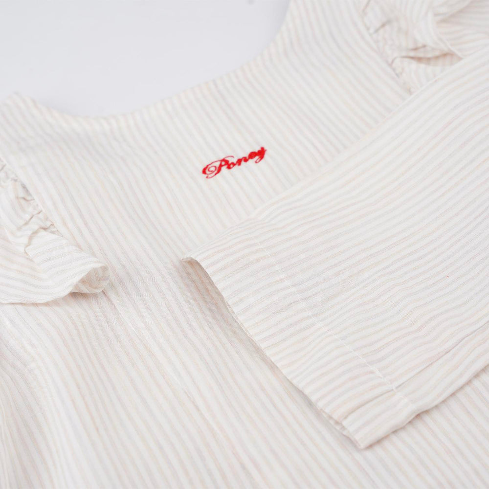 Poney Girls Cream Long Sleeve Blouse with Ruffles