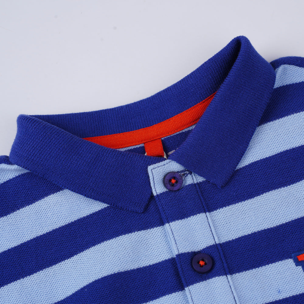 Poney Boys Blue Yard Dye Stripe Short Sleeve Polo