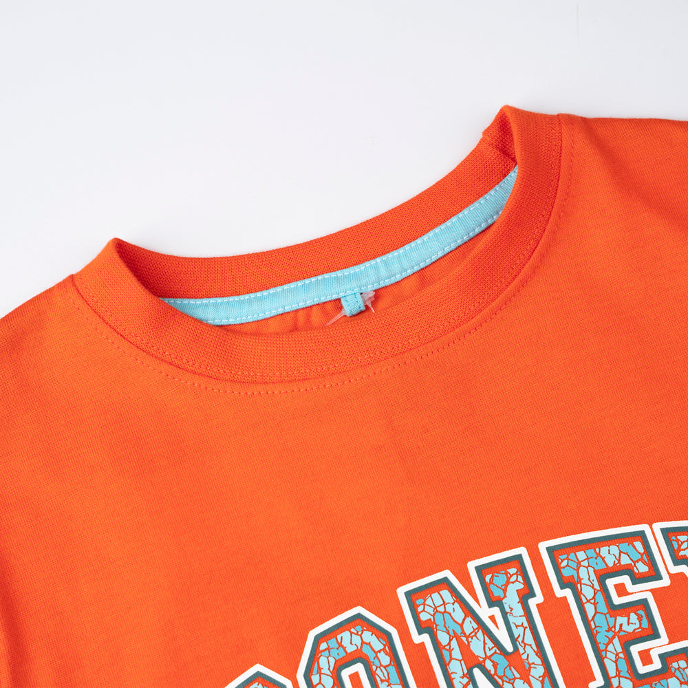 Poney Boys Orange Varsity-Style 'PONEY' print Short Sleeve Tee