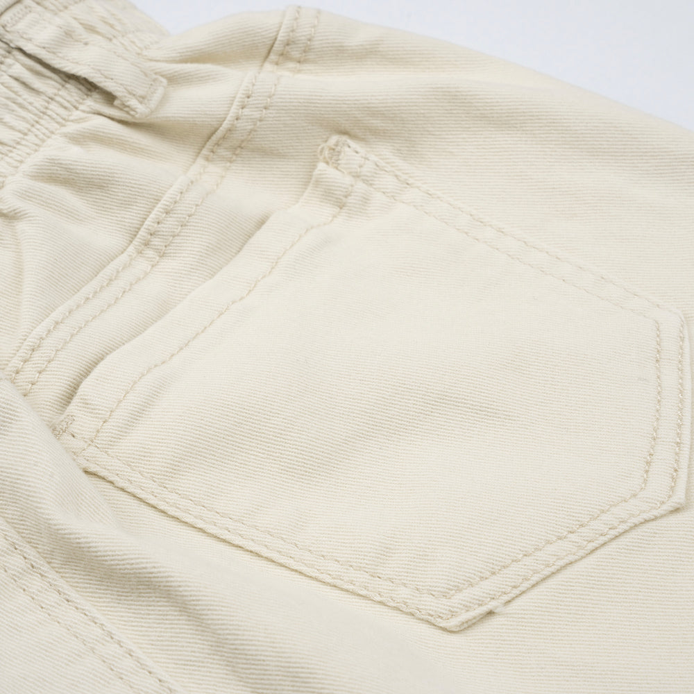 This season, the slouchy pants for girls come in a modern version. With the paper bag details, the elastic waist make them easy to slip-on. This pants are cute to pair with sweatshirts, blouses or short sleeve top in our collection. Paper bag trousers with an elastic waistband, front buttoned, front pockets and a rear pocket.