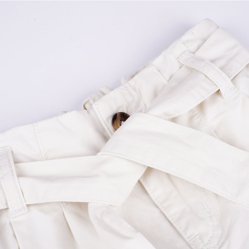 Poney Girls White Cotton Jacquard Trousers with Belt Details